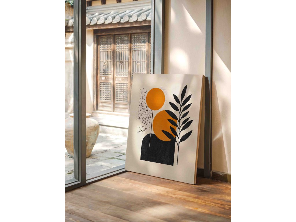 Poetický obraz "Geometrické květy s větví" interpretuje botanické prvky prostřednictvím precizní geometrické abstrakce. Květy redukované na geometrické tvary harmonicky interagují s lineární větví, vytváříce sofistikovanou kompozici. Minimalistický přístup zdůrazňuje strukturální krásu rostlinných forem. Obraz na kvalitním plátně přináší elegantní interpretaci přírody skrze modernistickou geometrickou estetiku.