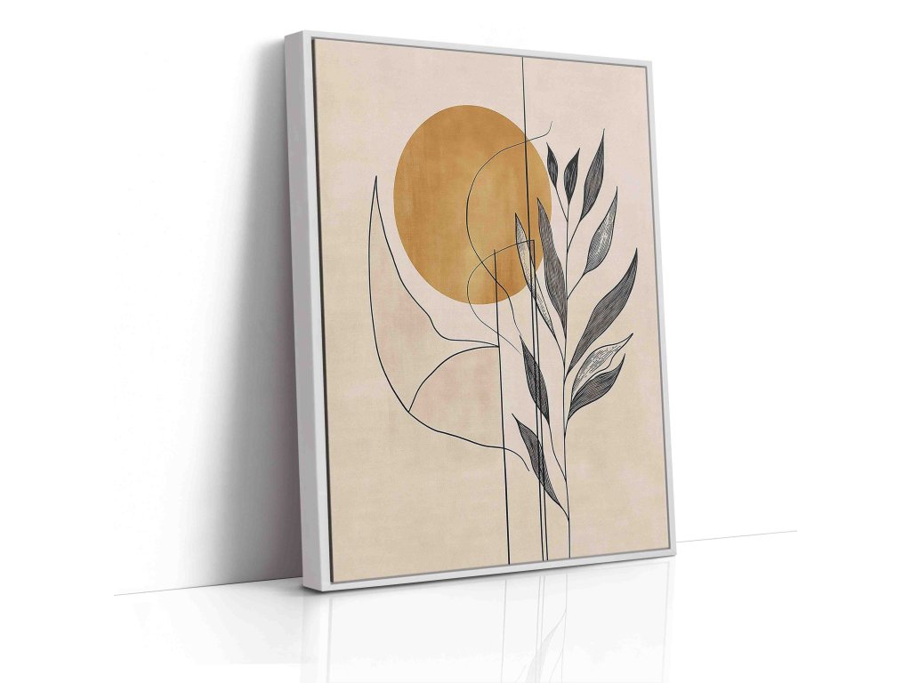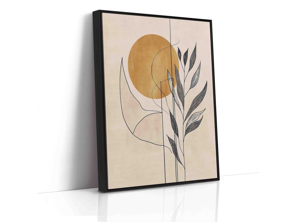 Elegantní obraz "Linie rostlin pod sluncem" zachycuje harmonii přírodního světa v minimalistické geometrické abstrakci. Vertikální linie rostlin se delikátně tyčí pod dominantním kruhovým sluncem a vytvářejí vizuální rytmus. Redukce na základní geometrické tvary umocňuje čistotu výrazu. Obraz na kvalitním plátně přináší do interiéru poklidnou energii a sofistikovanou interpretaci přírody.