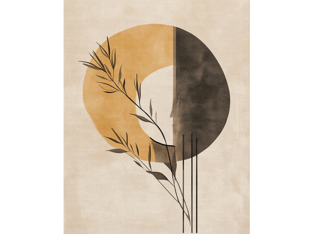 Fascinující obraz "Měsíc a slunce s rostlinou" propojuje kosmické a přírodní elementy v harmonické minimalistické kompozici. Kontrastující kruhové tvary měsíce a slunce vytvářejí vizuální dialog, zatímco stylizovaná rostlina přidává organický prvek. Geometrická abstrakce zdůrazňuje esenciální formy a vztahy mezi nimi. Obraz na kvalitním plátně přináší sofistikovanou rovnováhu.