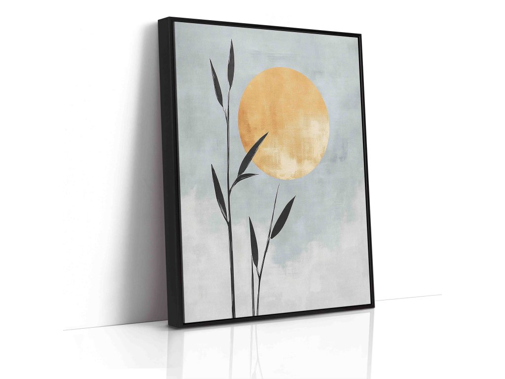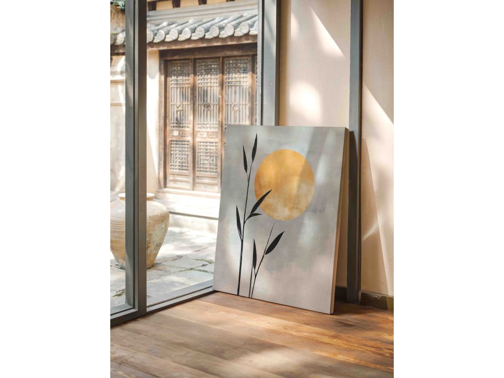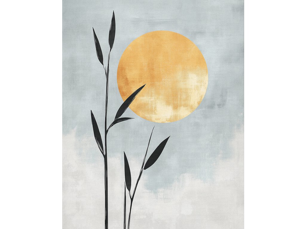 Poetický obraz "Slunce ve vodových barvách" kombinuje geometrický minimalismus s jemnou estetikou vodových barev. Kruhový tvar slunce dominuje kompozici, zatímco jeho provedení evokuje subtilní splývání barev. Obraz si zachovává čistotu geometrické abstrakce, obohacenou o emotivní kvalitu barevných přechodů. Na kvalitním plátně přináší do prostoru světelnou energii a jemnou harmonii.