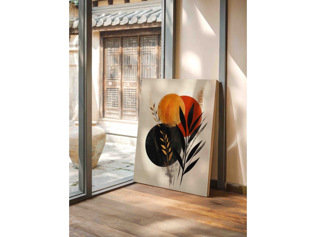 Fascinující obraz "Tři koule a rostlina" kombinuje geometrickou přesnost kruhových tvarů s organickou elegancí stylizované rostliny. Minimalistická kompozice vytváří harmonický dialog mezi matematickou dokonalostí koulí a jemnou nepravidelností botanického prvku. Promyšlené uspořádání přináší moderní, čistý výraz. Obraz na kvalitním plátně vnáší do prostoru vizuální rovnováhu.