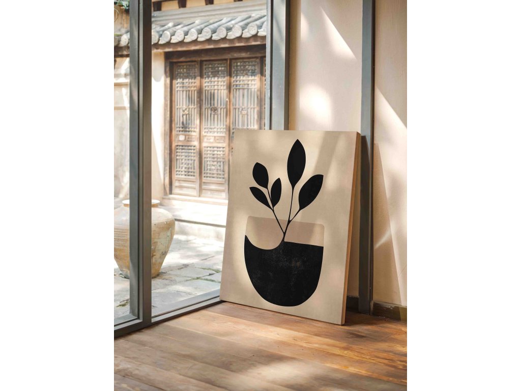 Elegantní obraz "Váza s rostlinou" představuje minimalistickou interpretaci klasického zátiší. Geometricky stylizovaná váza tvoří harmonický kontrast s organickými liniemi rostliny. Čisté tvary a promyšlená kompozice zdůrazňují esenci zachyceného objektu. Obraz na kvalitním plátně přináší do interiéru moderní, nadčasovou eleganci a jemnou připomínku přírodní krásy v geometrické abstrakci.