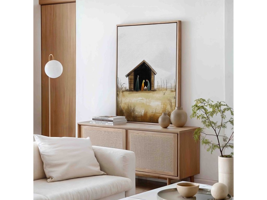 Okouzlující obraz "Betlém" přináší do vašeho domova ducha Vánoc a radostnou zvěst o narození Spasitele. Umělecké zpracování zachycuje svatou rodinu v chlévě, obklopenou pastýři a třemi králi. Hvězda betlémská osvětluje tento posvátný výjev. Kvalitní tisk na odolné plátno zajišťuje výrazné barvy. Ideální dekorace nejen v adventním období, ale jako celoroční připomínka zázraku Kristova příchodu.