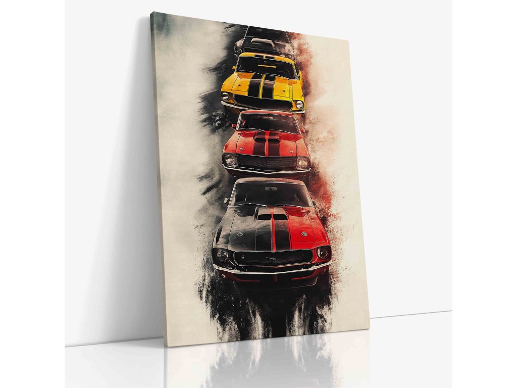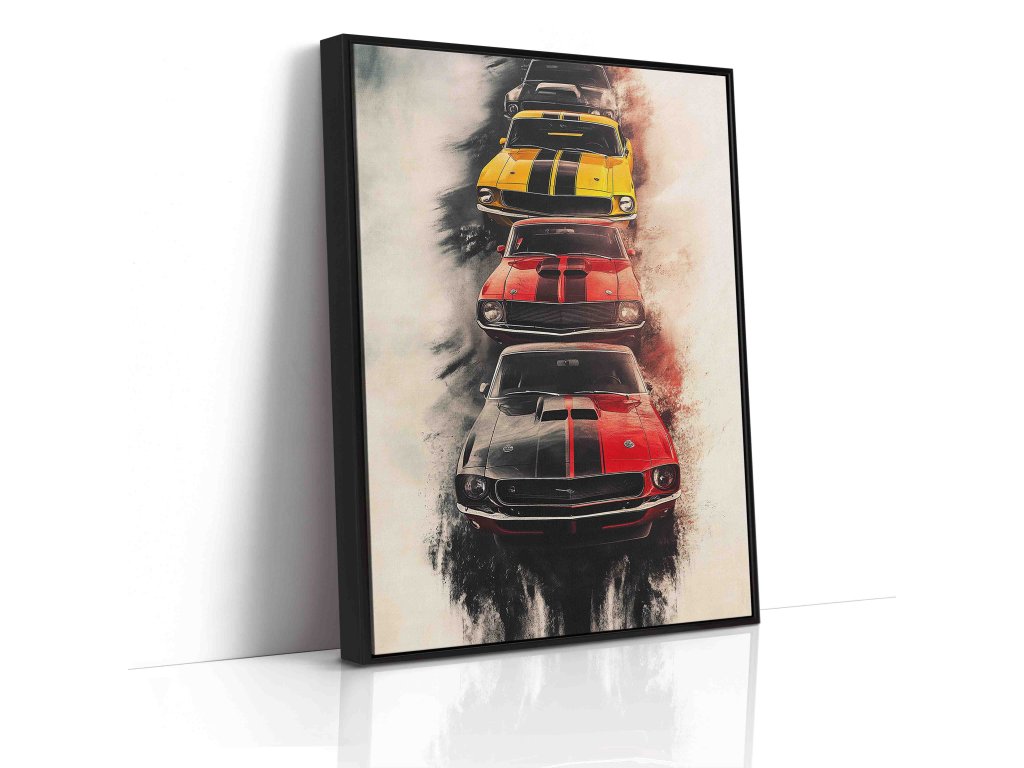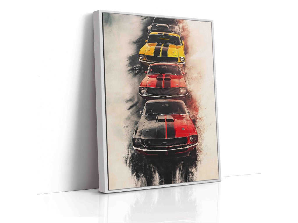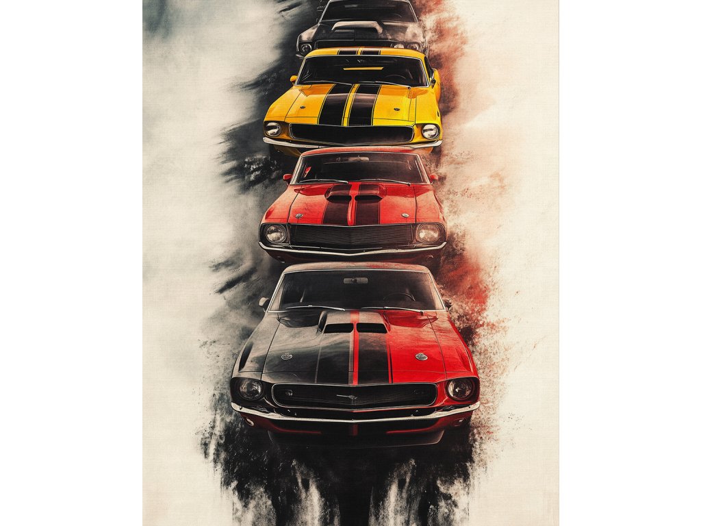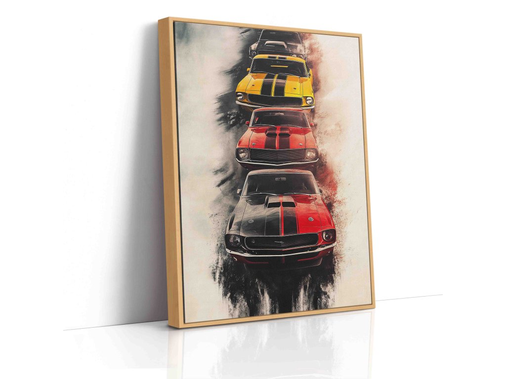 Průřez desetiletími amerického automobilového průmyslu. Tento obraz představuje pestrou galerii vozů, které definovaly generace. Ideální dekorace do garáží, kluboven nebo pro každého fanouška „Amerik“. Plátno je připraveno na pevném dřevěném rámu, stačí jen pověsit.
