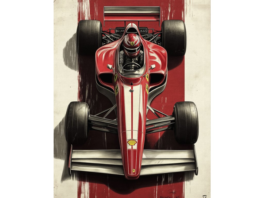 Moderní a umělecké pojetí nejznámějšího závodního vozu světa. Abstraktní prvky v kombinaci s ikonickou červenou barvou Ferrari tvoří dynamickou kompozici, která zaujme na první pohled. Skvělý kousek pro milovníky designu a Formule 1, kteří hledají něco víc než jen fotografii.