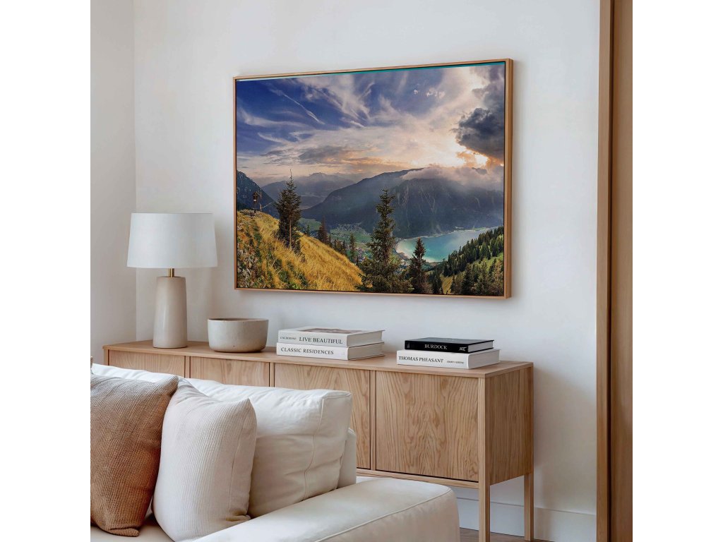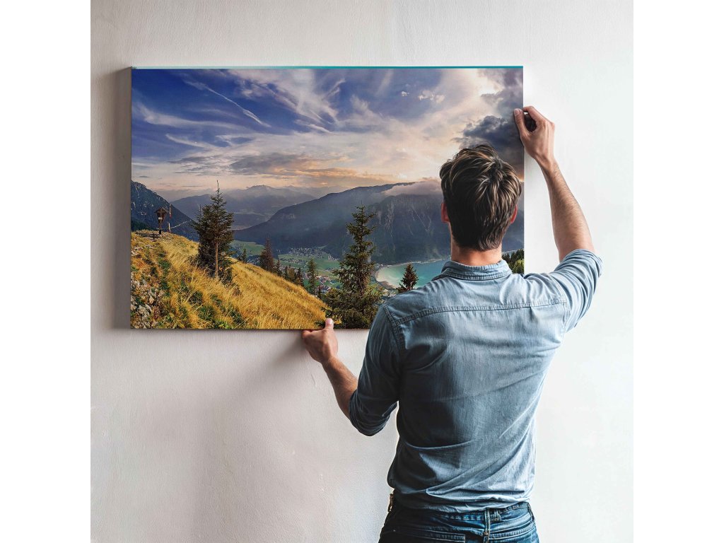 Zažijte čerstvost horského vzduchu s obrazem Ráno v Alpách. Motiv zachycuje první sluneční paprsky, jak dopadají na zasněžené vrcholky, zatímco údolí se ještě probouzí z mlhy. Kontrast světla a stínu vytváří velmi plastický dojem. Tisk na kvalitní plátno vyniká věrností barev a odolností. Tento obraz je perfektní pro milovníky horské turistiky, kterým chybí majestátnost velehor v každodenním životě.