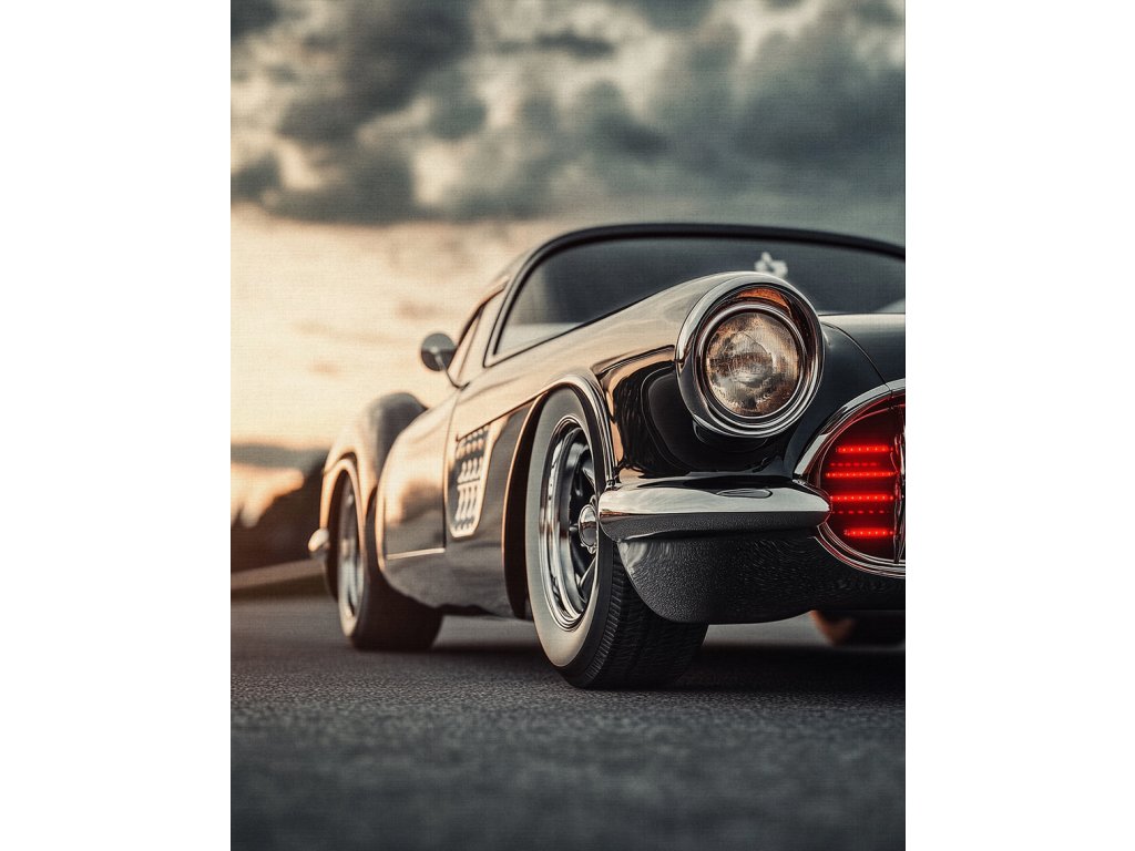 Oslava americké síly a sportovního ducha. Tento obraz zachycuje klasický sportovní vůz z USA v celé jeho kráse. Precizní linie a dravý vzhled na kvalitním plátně potěší každého, kdo má slabost pro výkonné motory ze zámoří.