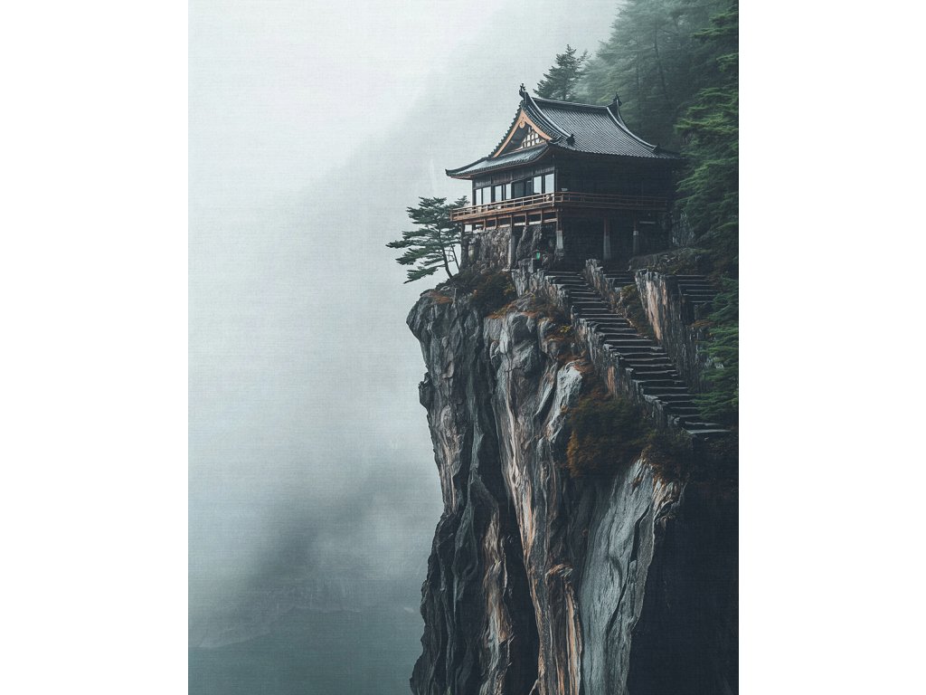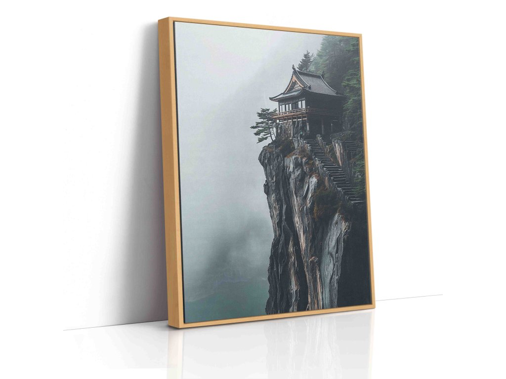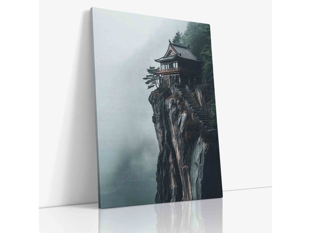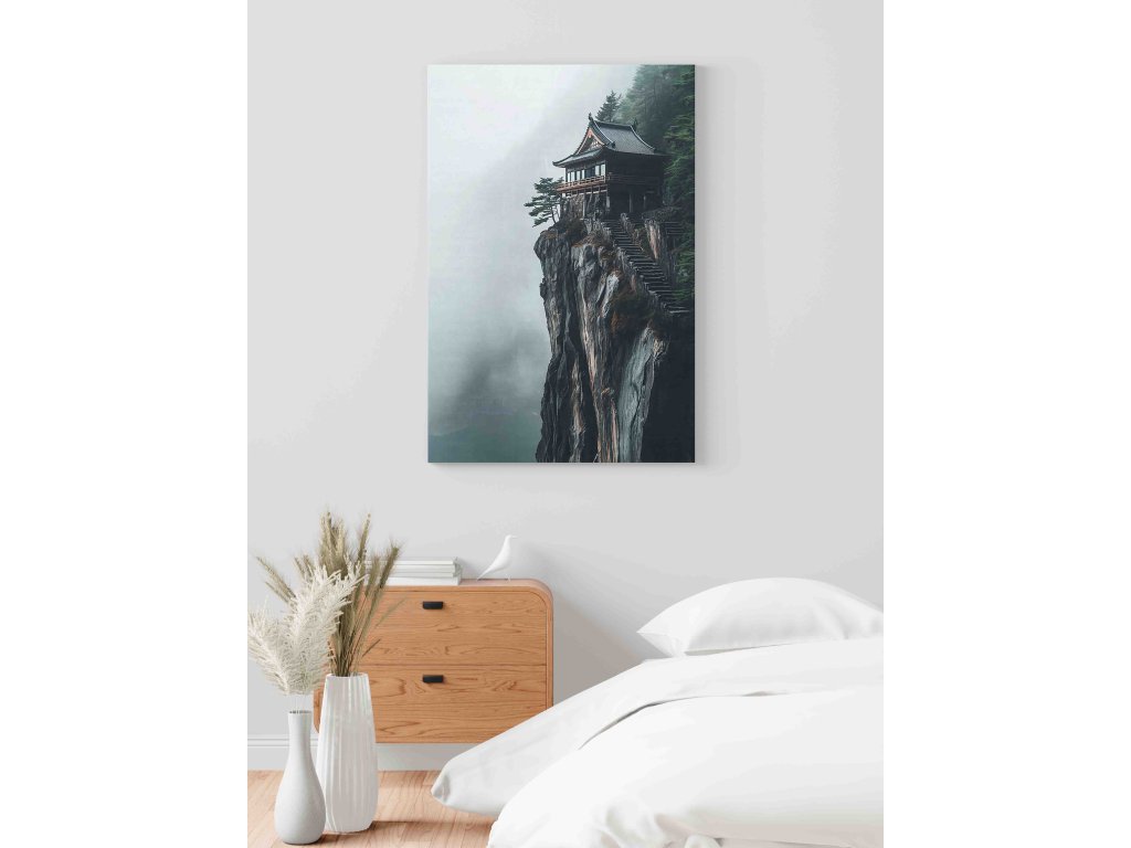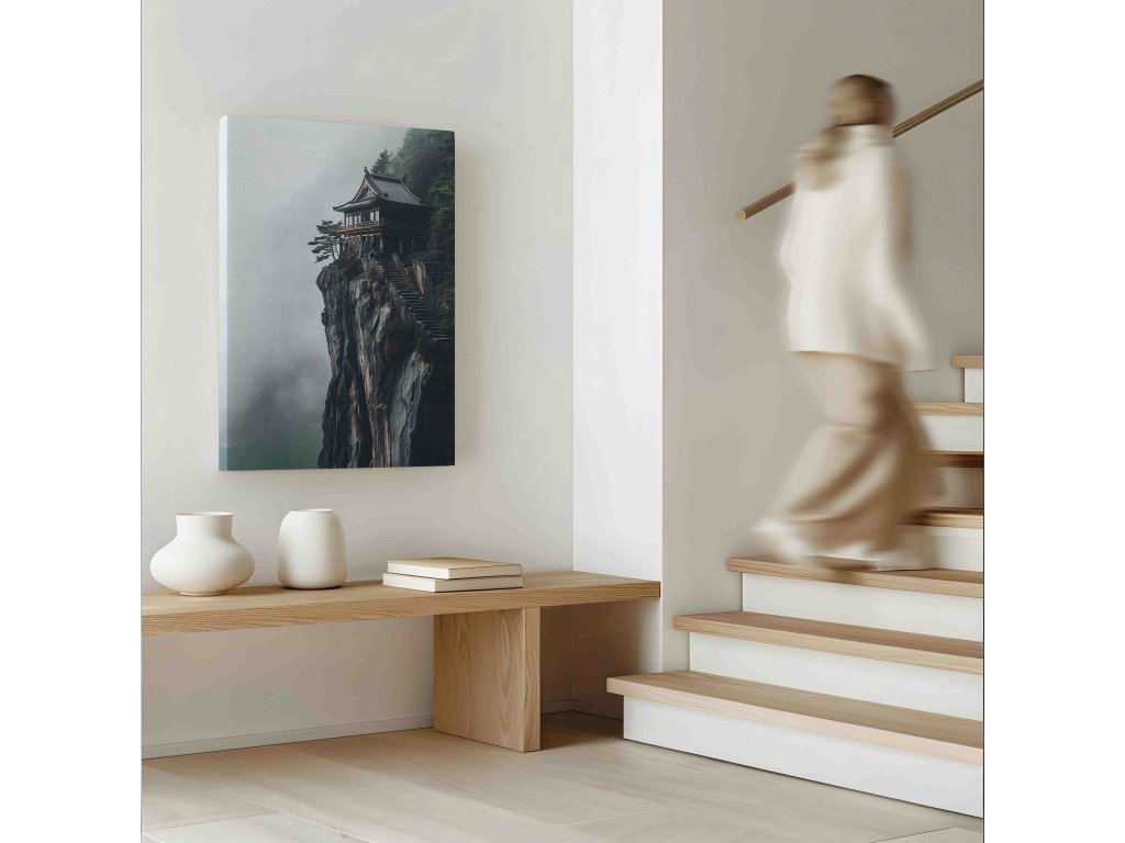 Harmonie mezi architekturou a přírodou zachycená na plátně. Tradiční asijský chrám tyčící se na okraji skály nabízí dechberoucí pohled na dálný východ. Precizní detaily chrámu v kombinaci s drsnou krásou skal a okolní zelení vytvářejí obraz plný klidu a duchovní síly. Ideální dekorace pro vytvoření zenového koutku ve vaší domácnosti nebo kanceláři.