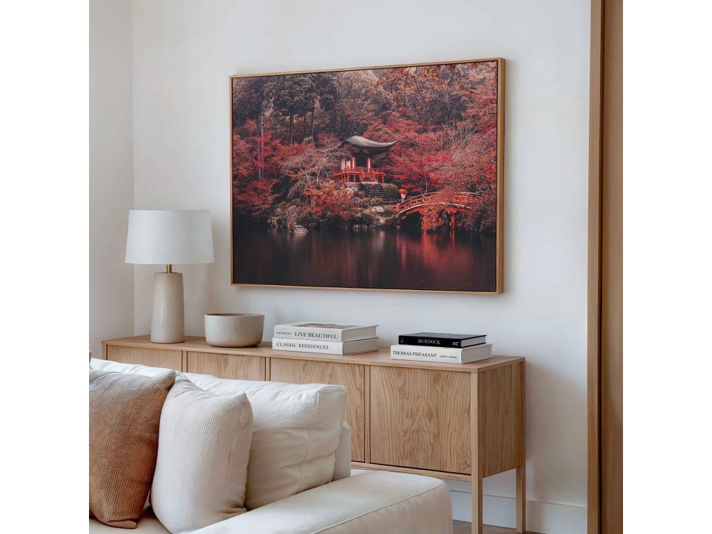 Ponořte se do meditativní atmosféry japonské zahrady. Obraz zachycuje ikonické červené javory a zenový klid, který je pro japonskou přírodu tak typický. Harmonická kombinace barev a precizní kompozice vnáší do prostoru rovnováhu a vnitřní klid. Špičkový tisk na plátno podtrhuje eleganci každého listu. Skvělá volba pro interiéry laděné do přírodního nebo minimalistického stylu.