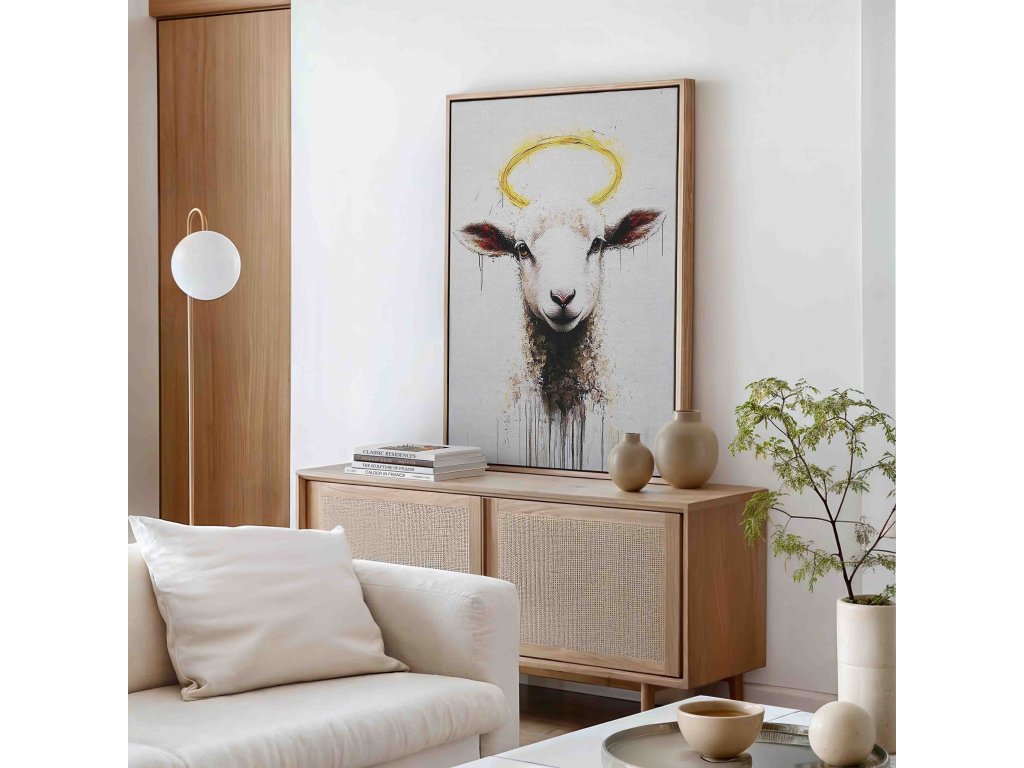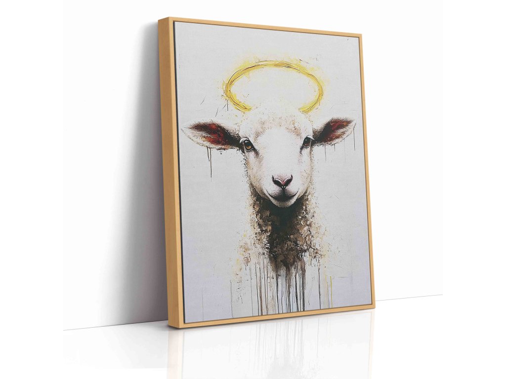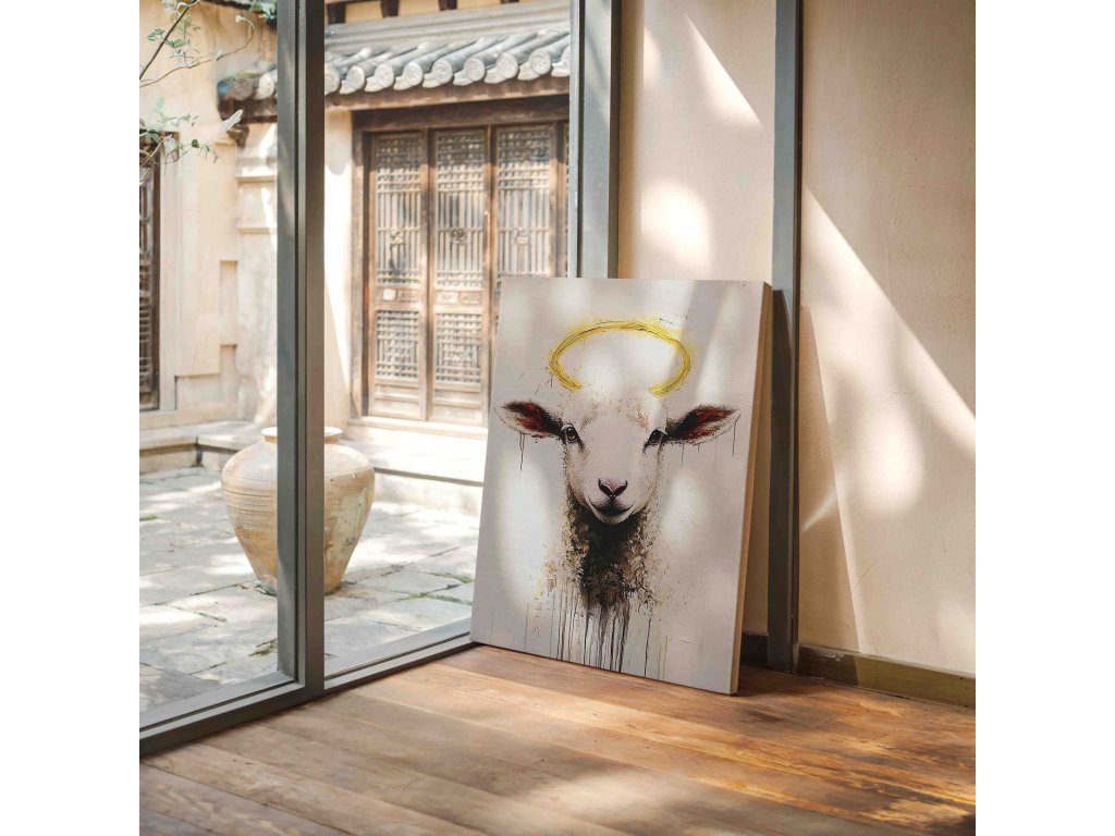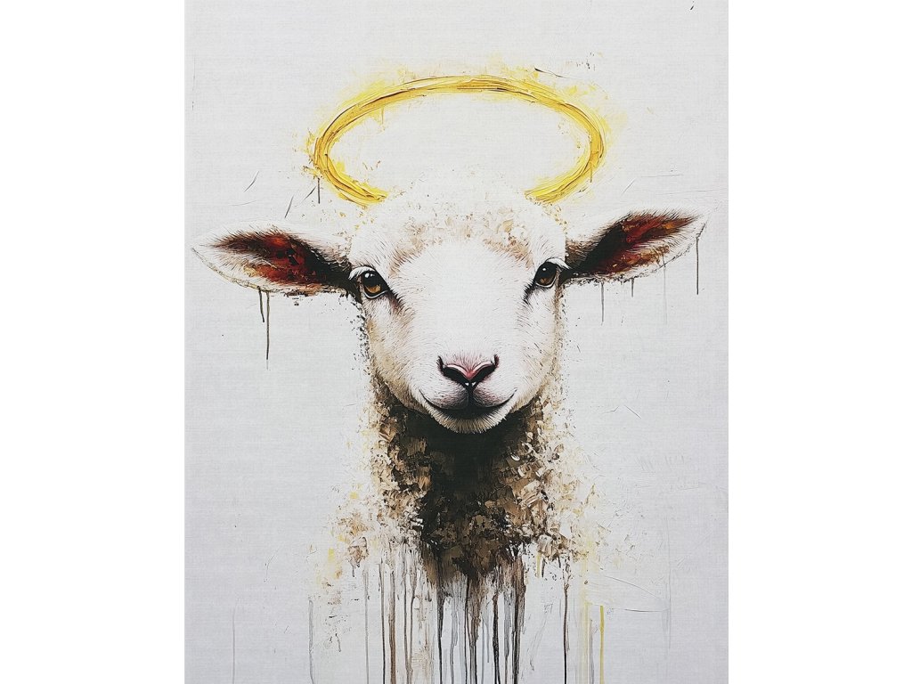 Symbolický obraz "Beránek boží" zachycuje hlubokou křesťanskou metaforu Krista jako obětního beránka. Toto dílo na plátně zobrazuje jehně s nadpřirozenou aurou – tradiční symbol Ježíše. Jemné světelné efekty a měkká barevná paleta dodávají obrazu éterickou kvalitu. Beránek symbolizuje čistotu a dobrovolnou oběť. Kompozice vyzařuje klid. Obraz připomíná biblické poselství o Beránku Božím, který snímá hříchy světa.