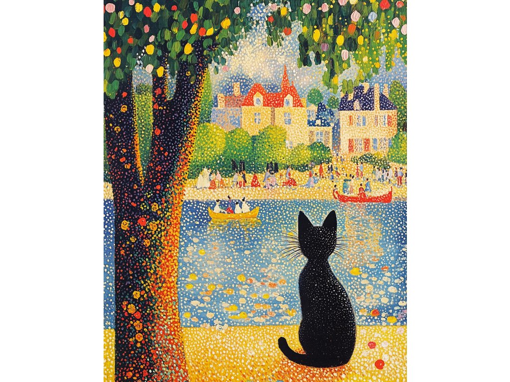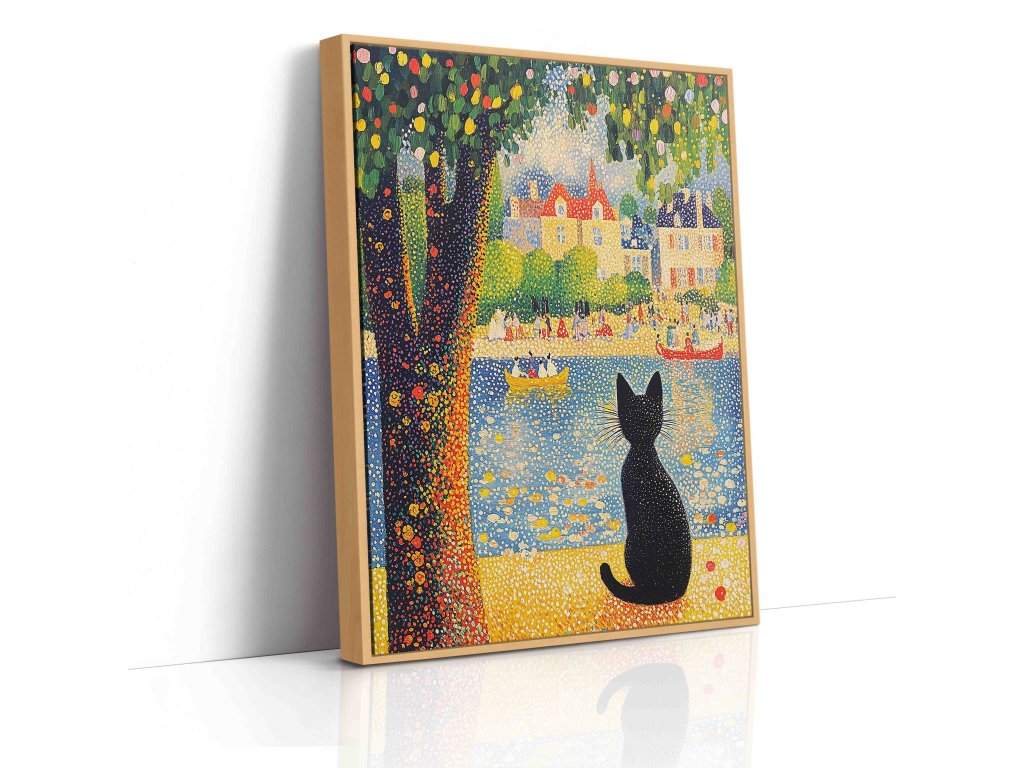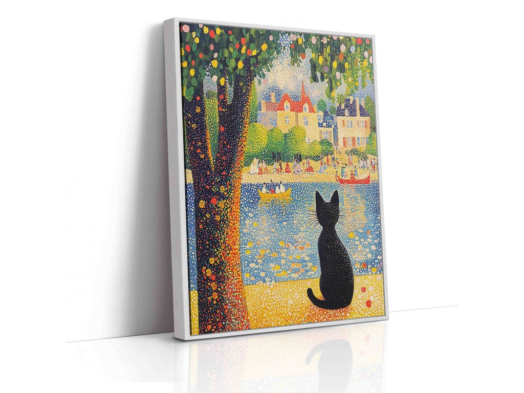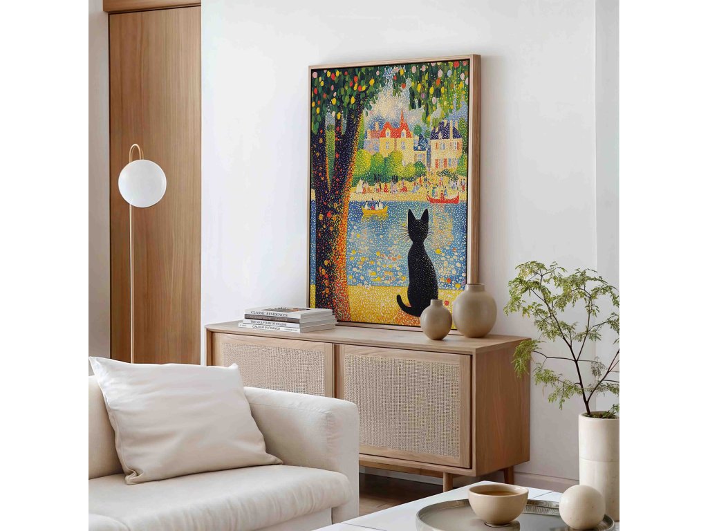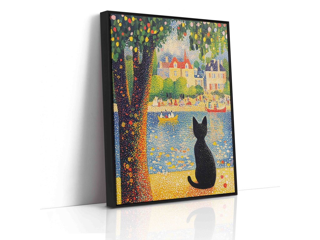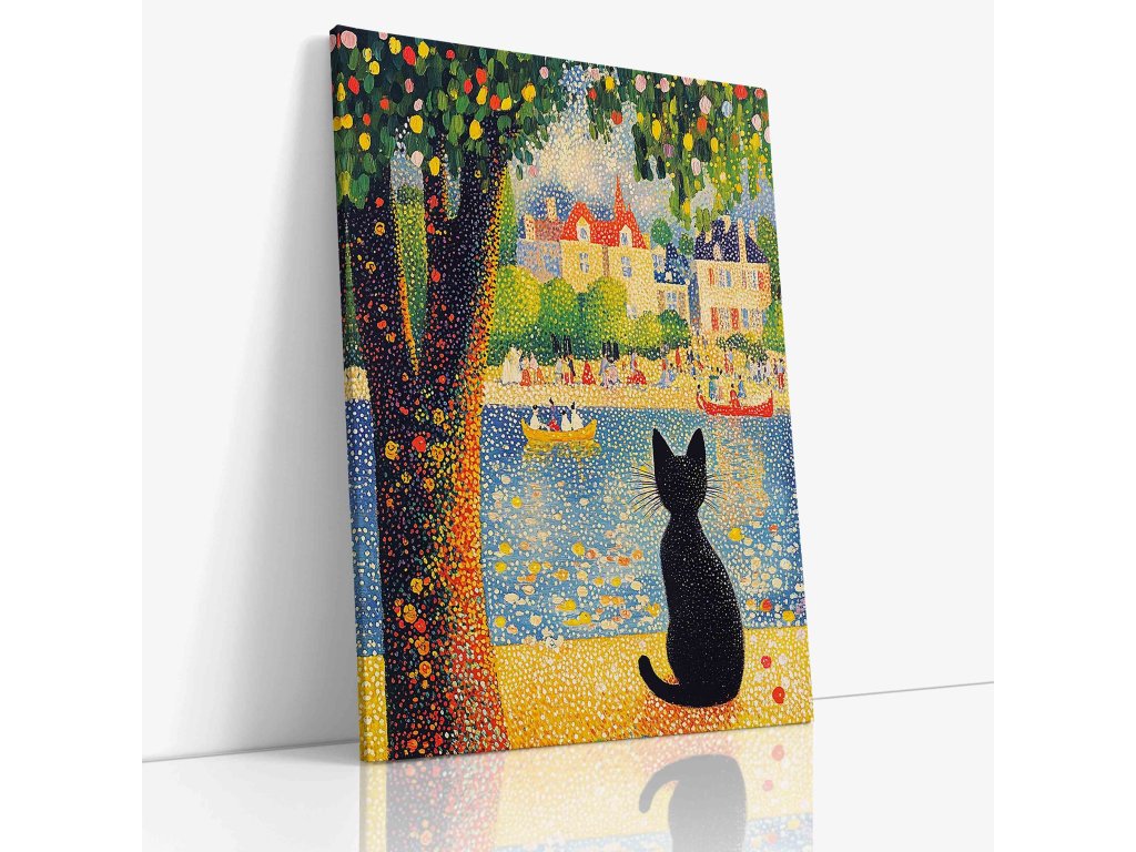 Obraz Černá kočka sleduje břeh - Pointilismus - Obraz na plátně