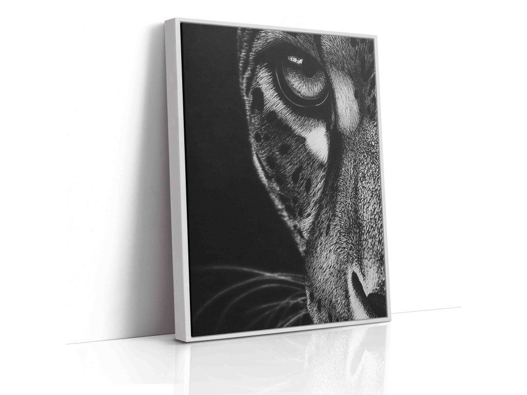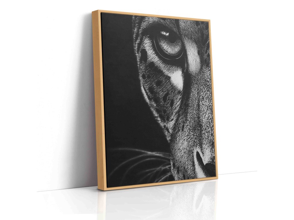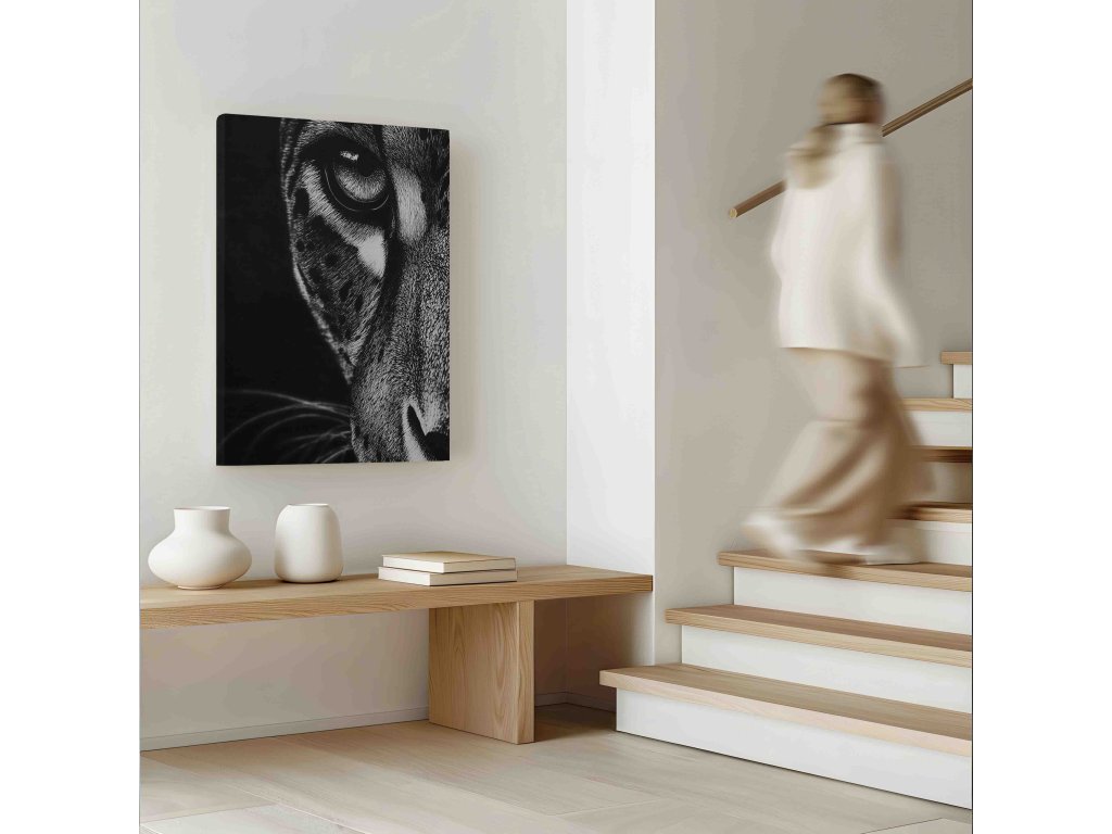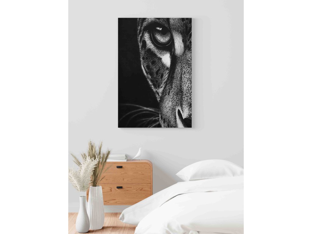 Nadčasová elegance v monochromatickém provedení. Tento černobílý obraz na plátně se zaměřuje na oko jaguára, přičemž absence barev dává vyniknout struktuře kůže a intenzitě pohledu. Černobílá fotografie je sázkou na jistotu v jakémkoliv interiéru – od minimalistických loftů až po klasické pracovny. Kvalitní plátno a hluboký kontrast černé zajišťují, že obraz bude vypadat velmi moderně a umělecky.