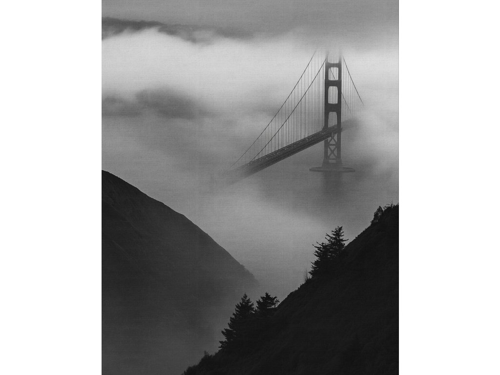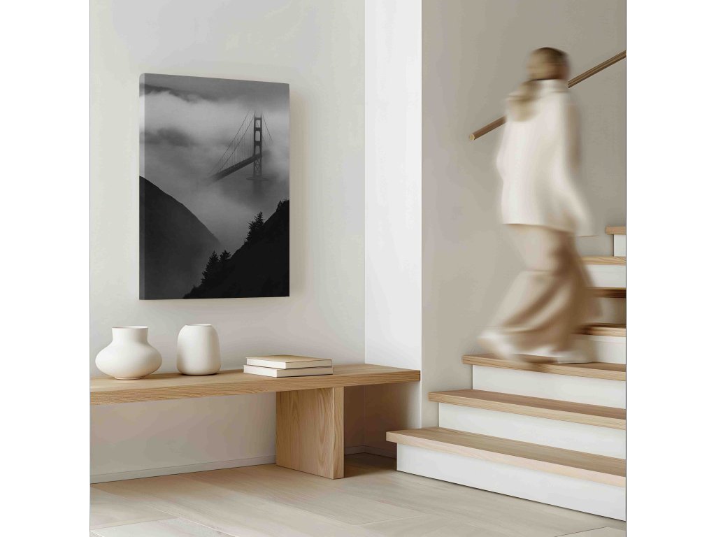 Nadčasová elegance a umělecká hloubka. Černobílá variace mostu Golden Gate v San Franciscu zdůrazňuje tvary, linie a kontrast mezi ocelí a mlhou. Absence barev dává vyniknout dramatické náladě a architektonické kráse mostu. Tato stylová dekorace je perfektní volbou pro moderní interiéry, minimalistické kanceláře nebo jako dárek pro milovníky černobílé fotografie.