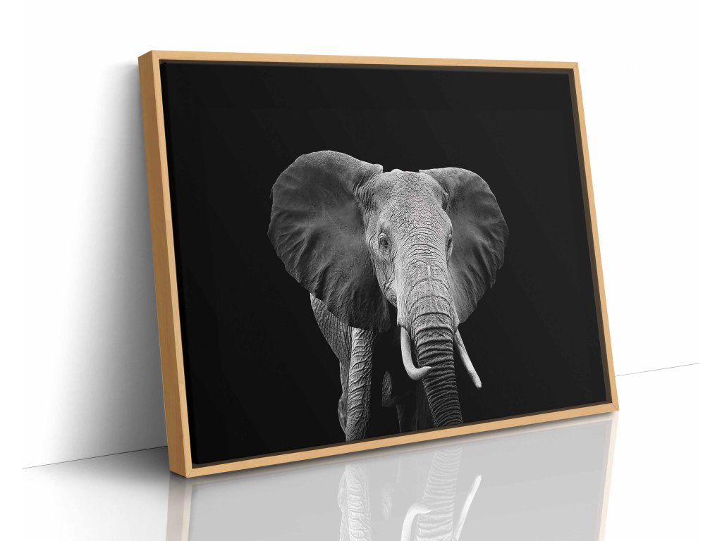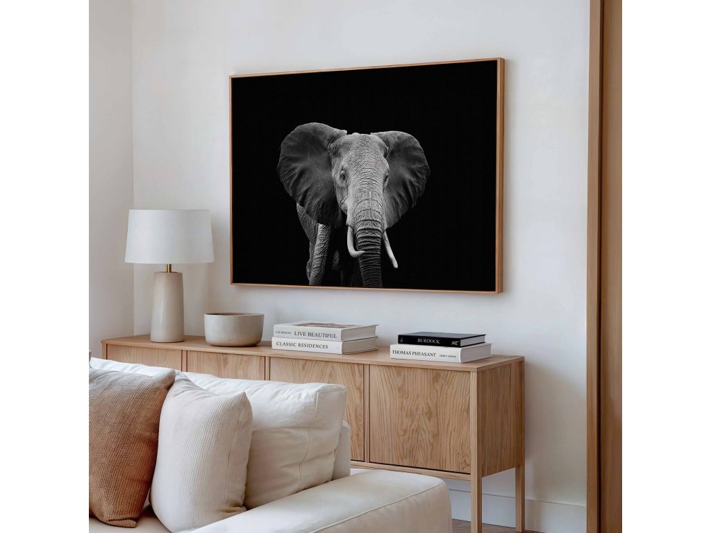Elegantní černobílý portrét slona, který upoutá pozornost svým dramatickým kontrastem a čistotou linií. Absence barev umožňuje plně se soustředit na texturu, tvar a výraz tohoto zvířete. Každý detail, od vrásčité kůže po inteligentní pohled, je zachycen s mimořádnou precizností. Minimalistické pojetí dodává obrazu nadčasový a univerzální charakter. Tisk na prémiové plátno zaručuje dlouhou životnost a ostrost.