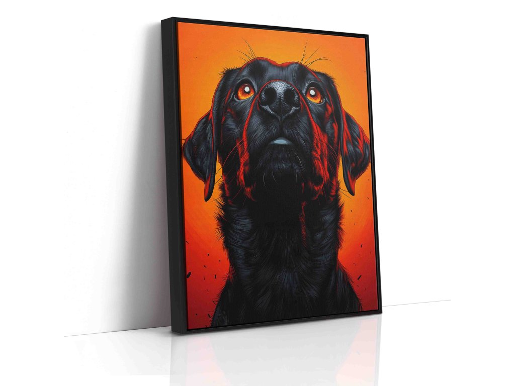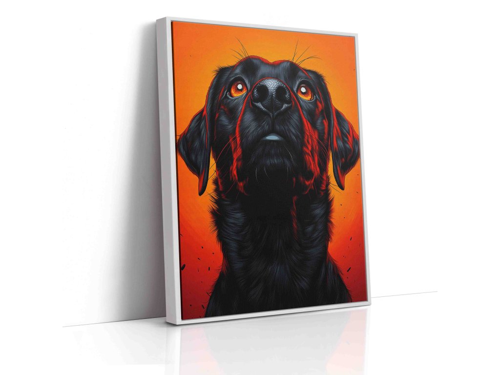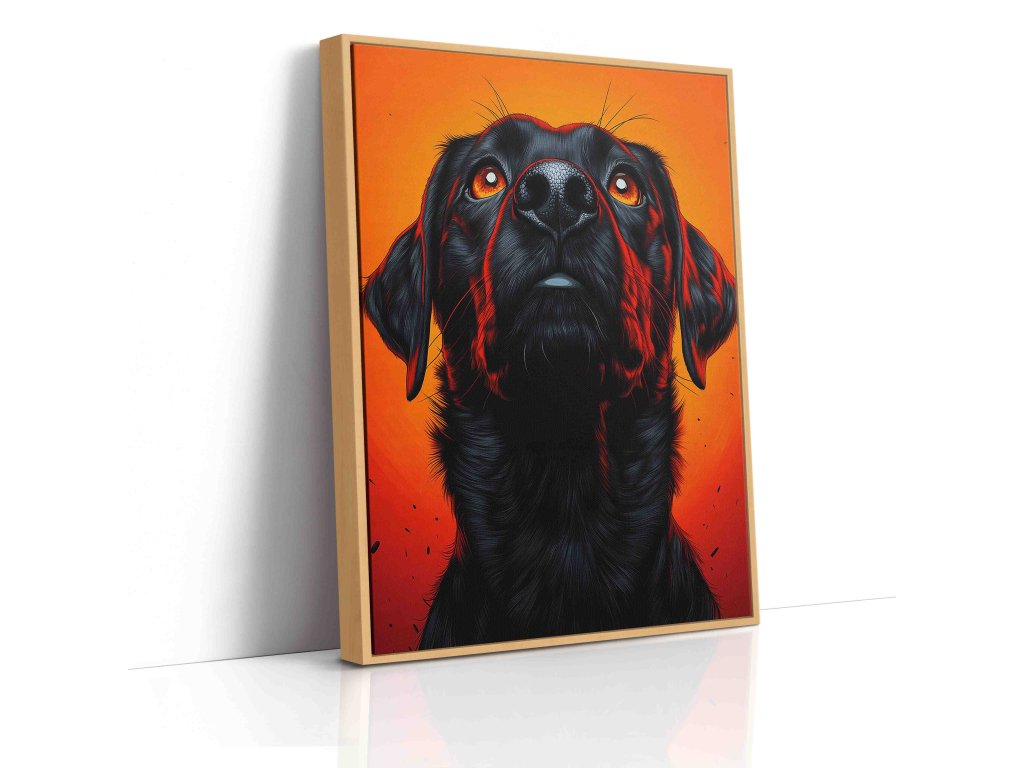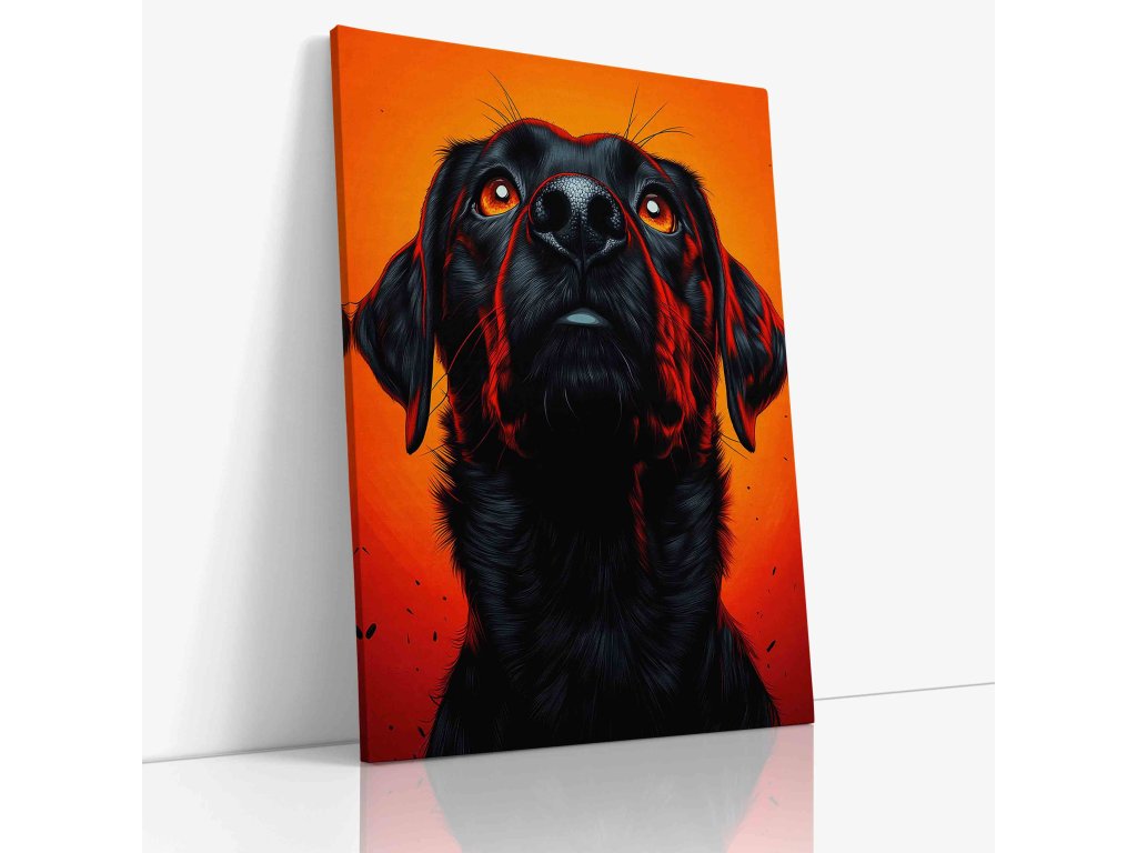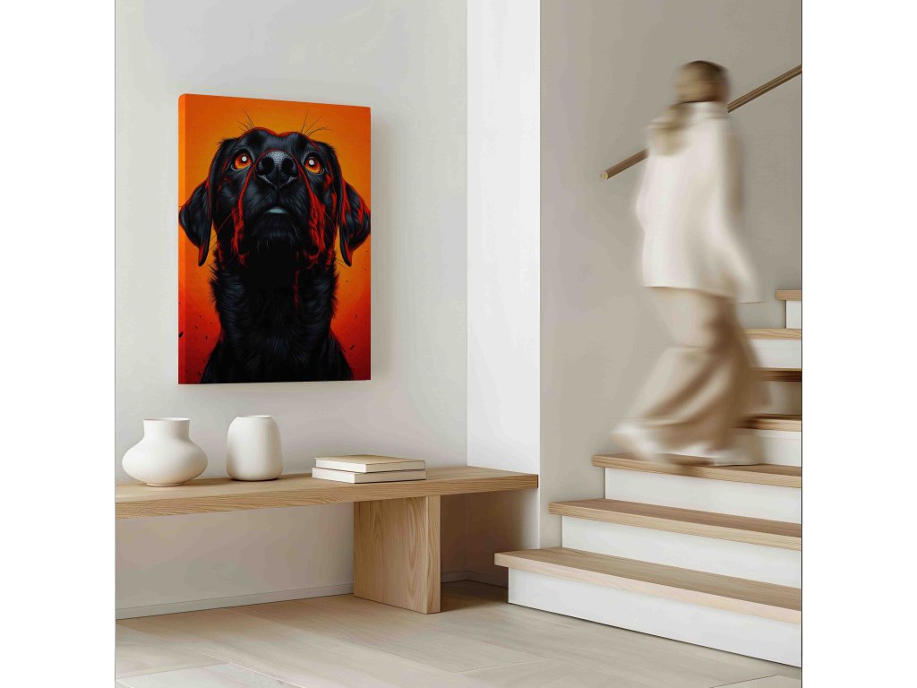 Dokonalý kontrast pro vaši stěnu. Temně černá srst labradora v kombinaci s vibrantní oranžovou barvou pozadí vytváří vizuálně silné dílo, které nikdo nepřehlédne. Tento obraz na plátně je ideální pro moderní minimalistické interiéry, kde slouží jako hlavní barevný prvek. Labrador, symbol věrnosti a přátelství, zde dostává moderní a uměleckou podobu, která oživí jakýkoliv obývací pokoj.