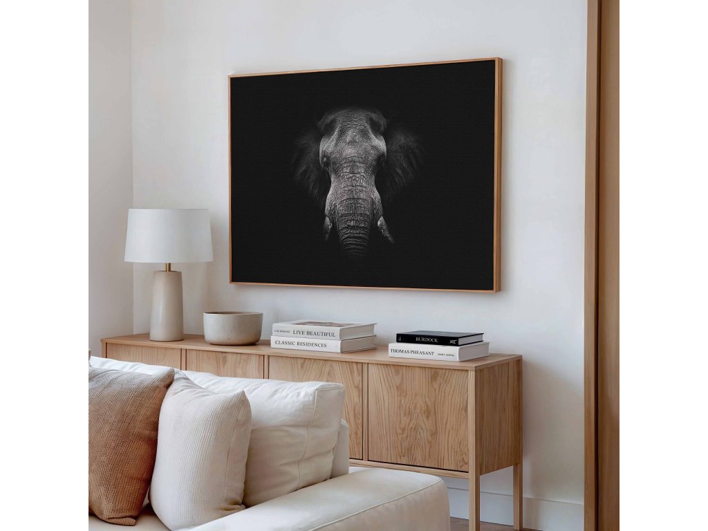 Dramatický a moderní obraz černého slona na světlém pozadí. Silná silueta zdůrazňuje ikonický tvar a majestátnost tohoto zvířete. Minimalistické provedení s čistými liniemi dodává obrazu současný umělecký ráz. Je ideální pro moderní a designově zařízené interiéry, kde se stane výrazným dekorativním prvkem. Tisk na prémiové plátno zaručuje sytost černé barvy a ostrost kontur.