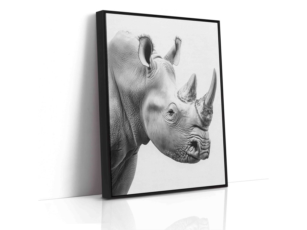 Obraz Drsná krása: Nosorožec (černobílá hlava) – Obraz na plátně