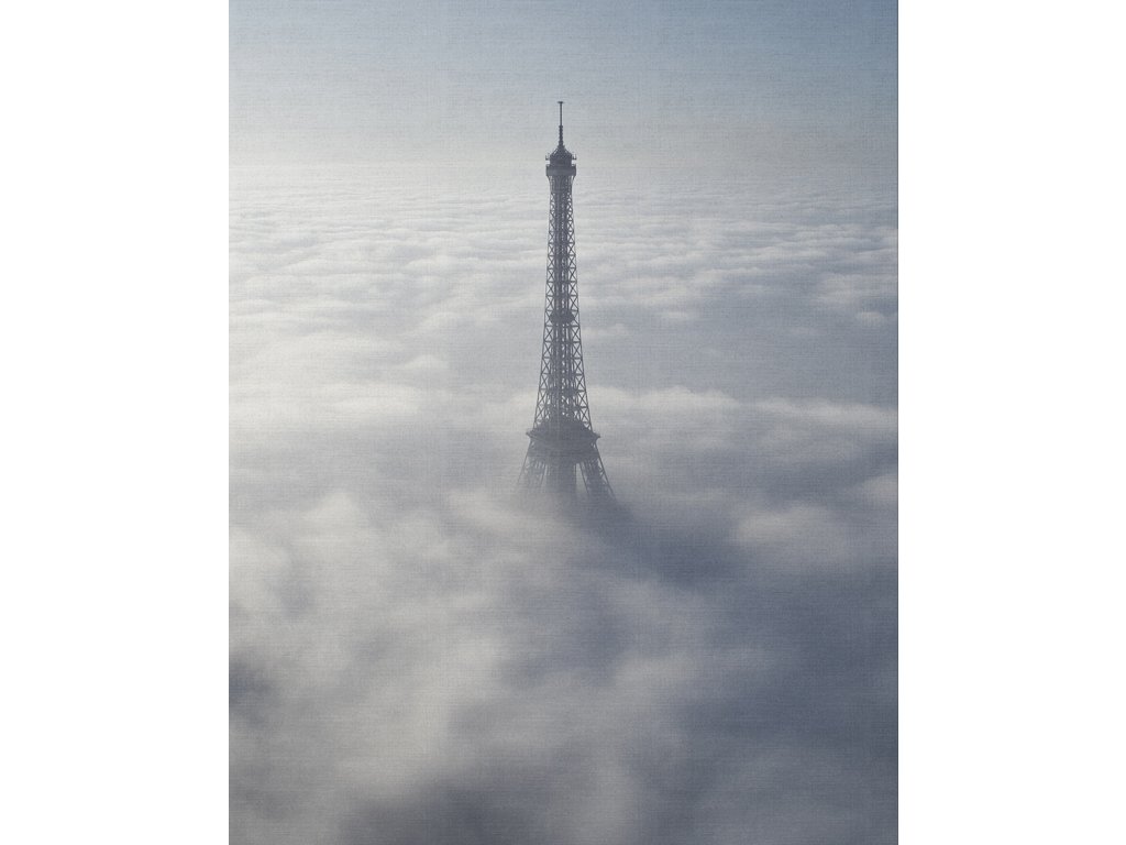 Unikátní perspektiva, která vás vynese nad pařížské střechy. Eiffelova věž, jejíž vrchol probodává bílé mraky, působí jako z jiného světa. Tento snový a poetický obraz evokuje pocit svobody a nekonečných výšek. Světlé tóny bílé a šedé v kombinaci s kovovou konstrukcí věže tvoří harmonický celek, který opticky zvětší a prosvětlí váš interiér.