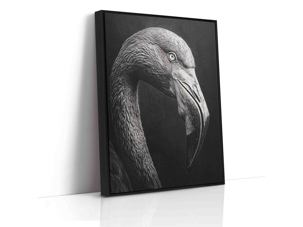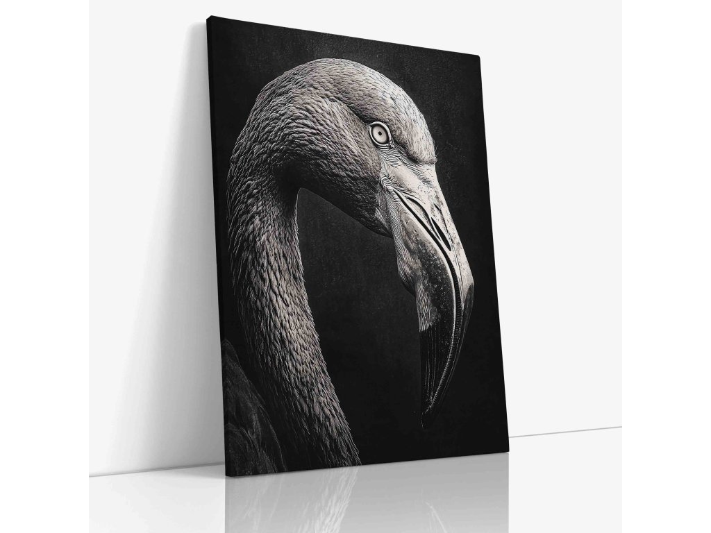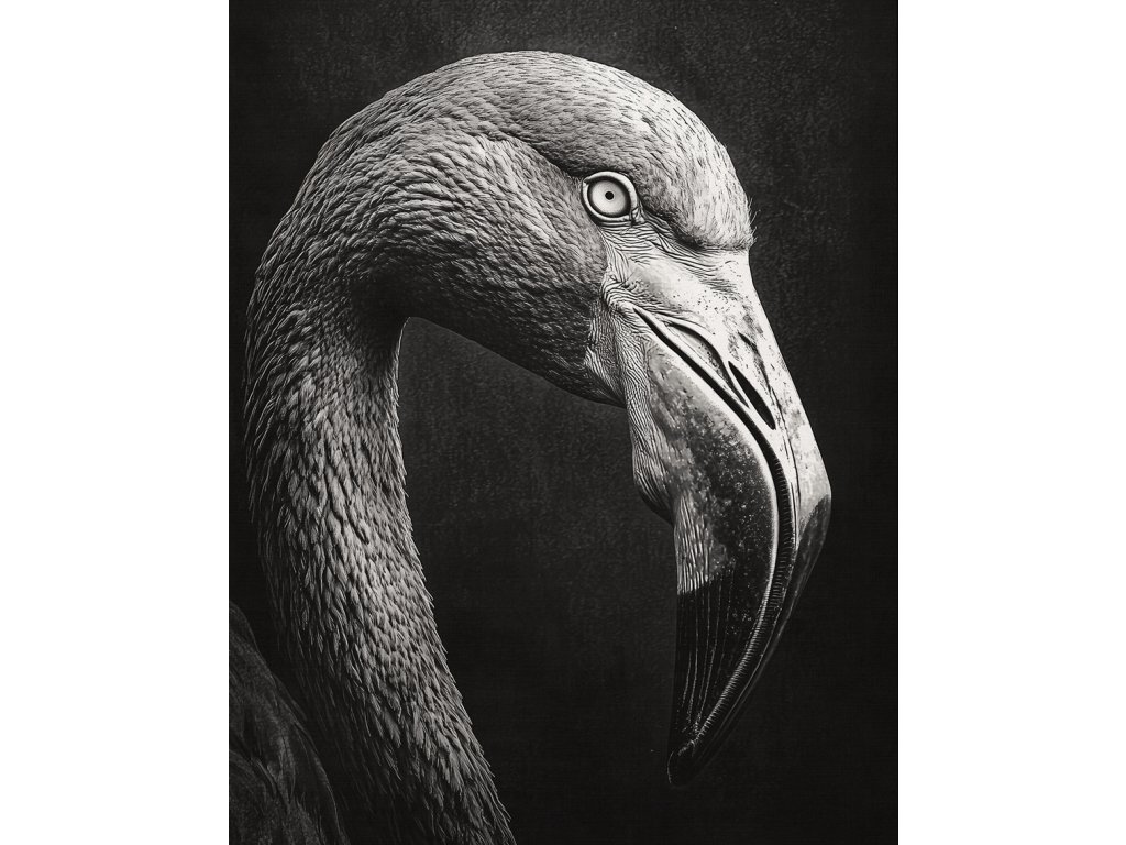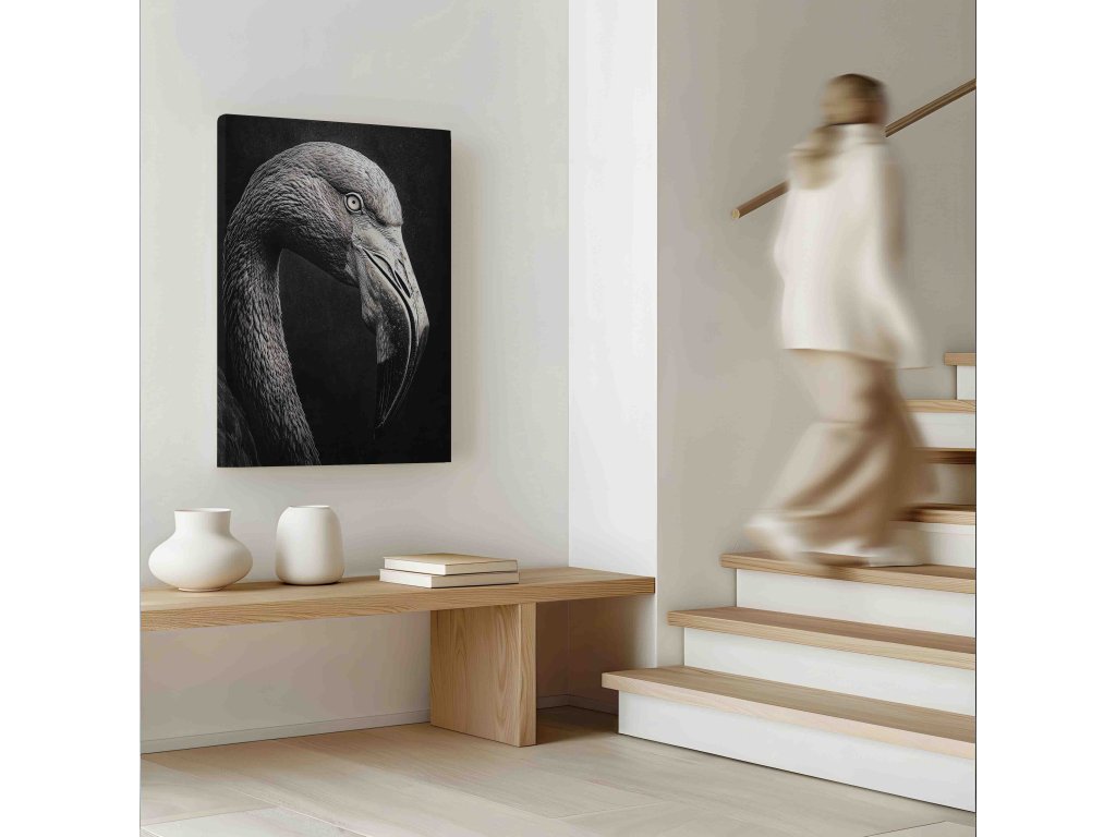 Když se exotika setká s minimalismem. Tento černobílý obraz na plátně zobrazuje hlavu plameňáka s jeho charakteristickým křivým zobákem. Absence typické růžové barvy dává vyniknout ladným liniím a tvarům, což z obrazu dělá sofistikované grafické dílo. Ideální dekorace pro milovníky čistého designu a neobvyklých zvířecích motivů. Kvalitní plátno napnuté na dřevěném rámu zaručuje, že plameňák bude stylovou ozdobou vašeho bytu.