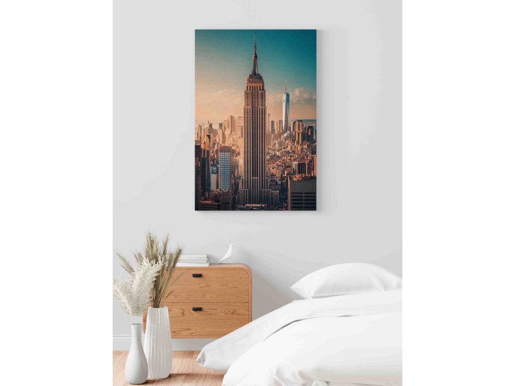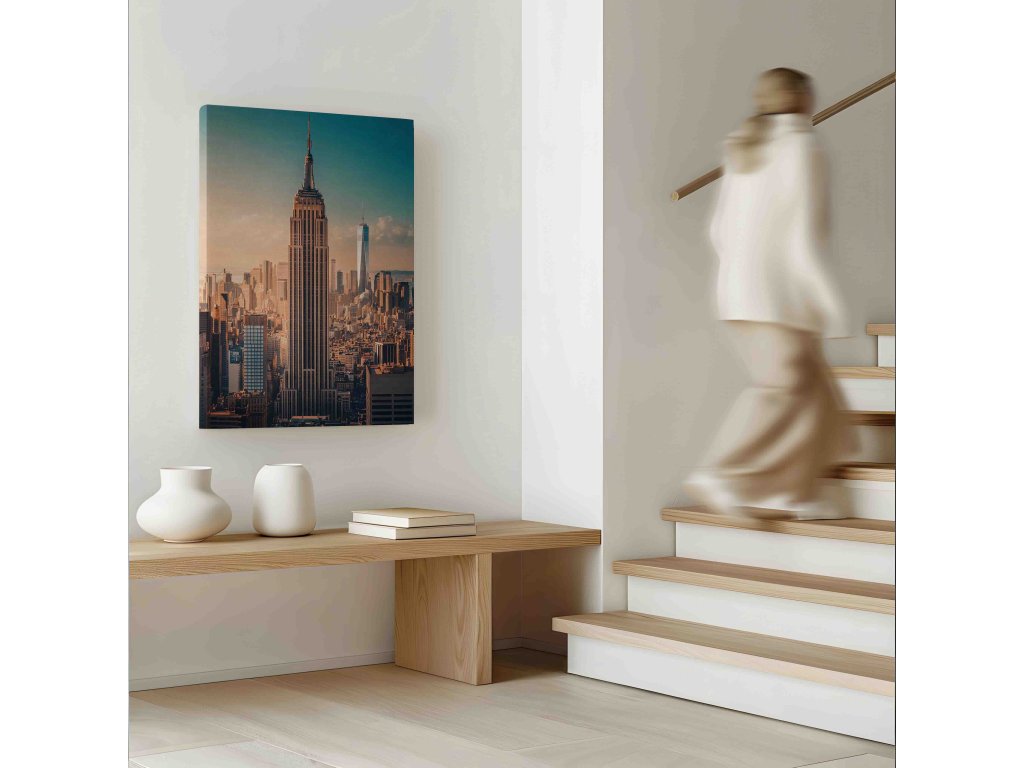 Ikonická dominanta Manhattanu v klasickém podání. Obraz Empire State Building zachycuje tuto legendární stavbu jako symbol New Yorku a lidské ambice. Detailní záběr na architekturu Art Deco uprostřed městského shonu přináší na vaši stěnu atmosféru „velkého jablka“. Nadčasový design obrazu se skvěle hodí do moderních kanceláří nebo obývacích pokojů s městskou tematikou.