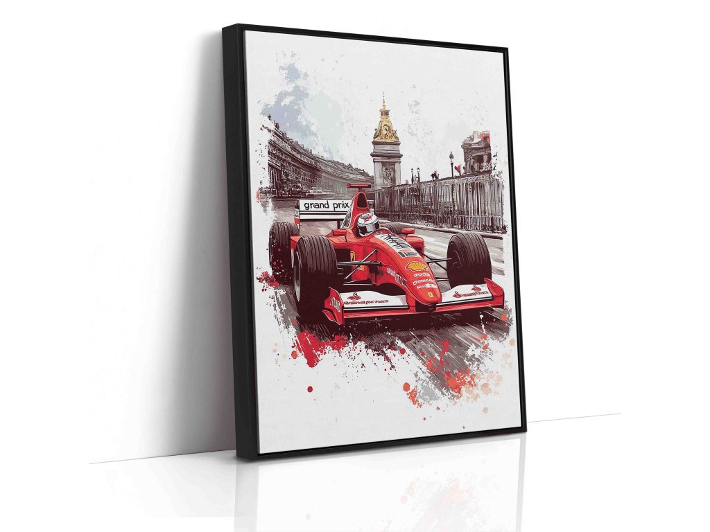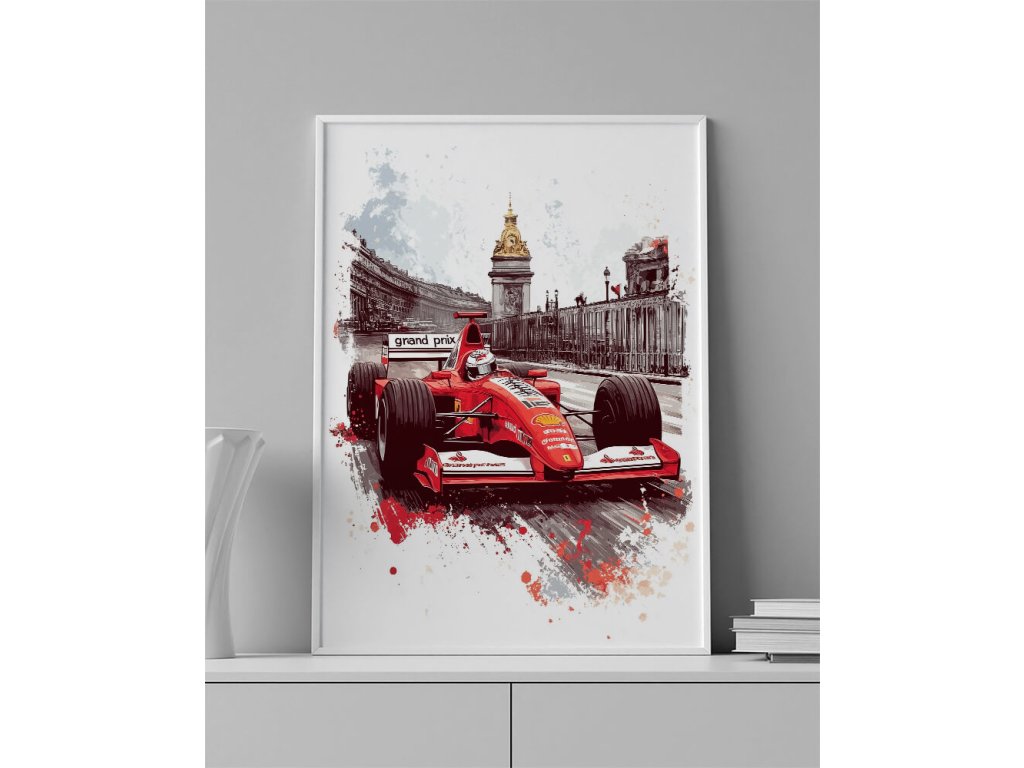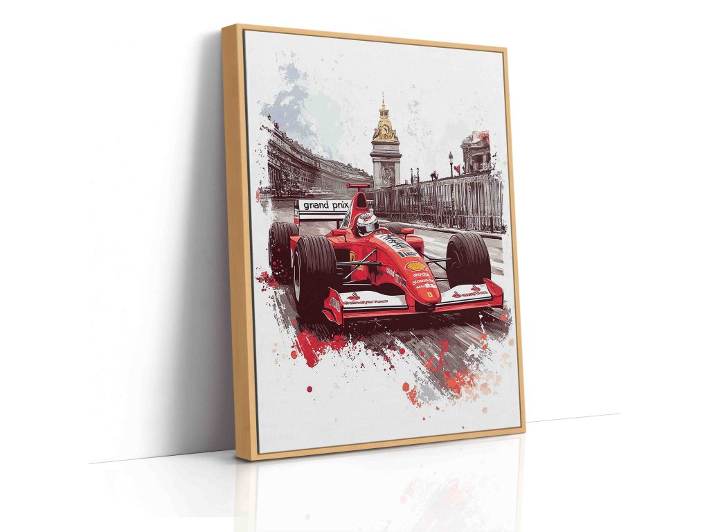 Co kdyby se Grand Prix konala přímo pod vašimi okny? Tento obraz zachycuje formuli Ferrari v netradičním městském prostředí. Kontrast mezi závodním strojem a běžnou ulicí vytváří silný vizuální příběh. Kvalitní plátno a syté barvy dělají z tohoto obrazu nepřehlédnutelný prvek interiéru.