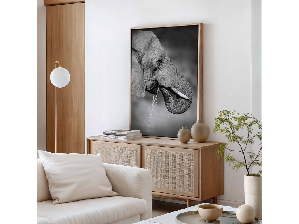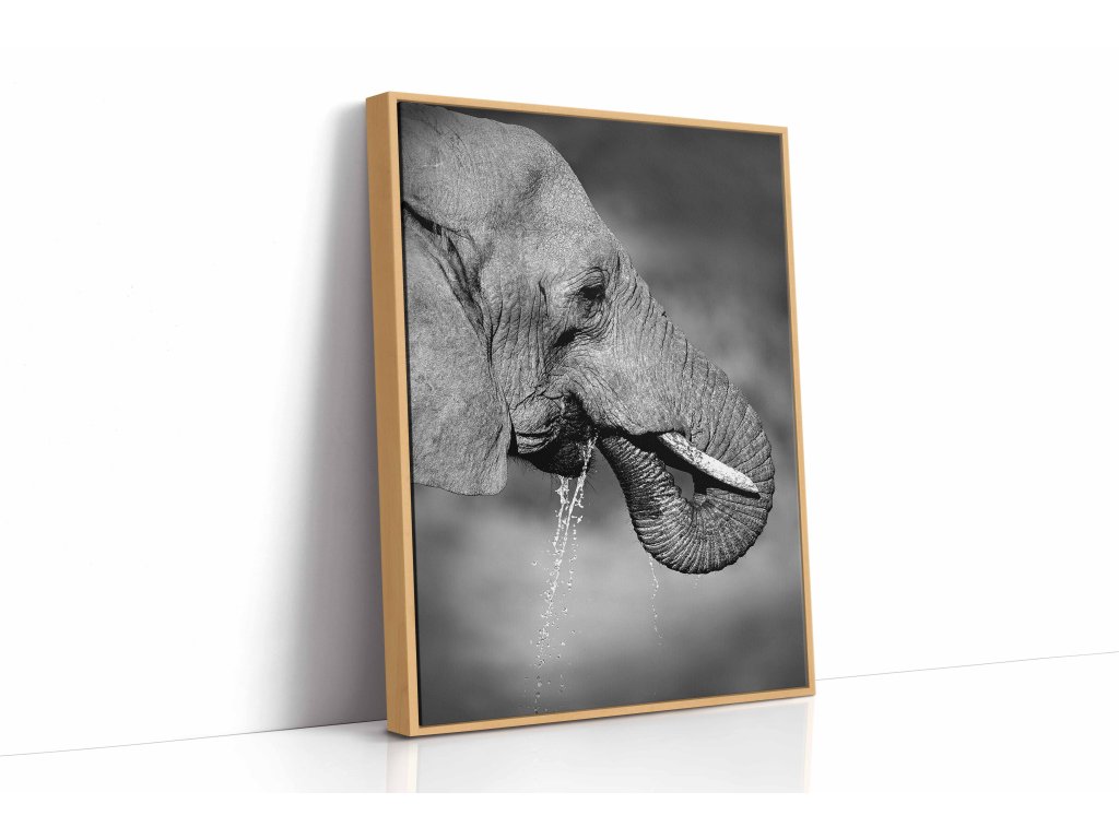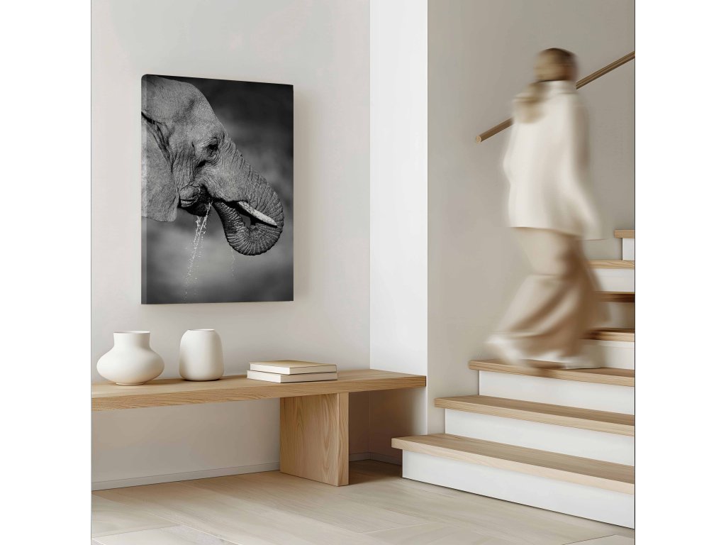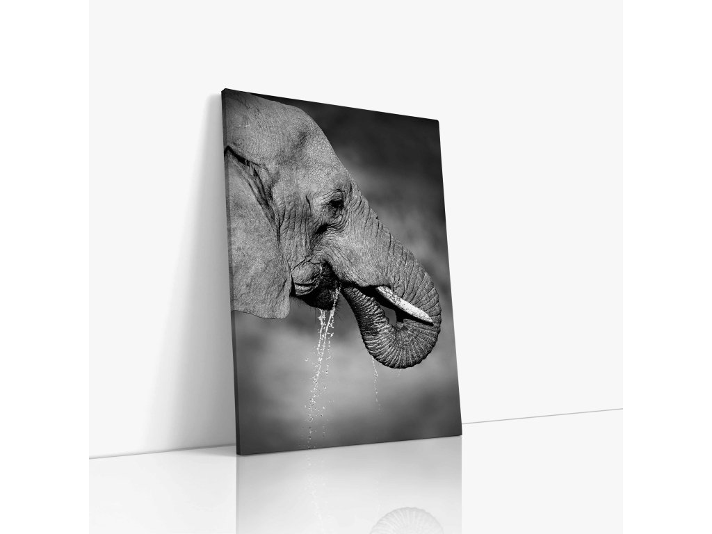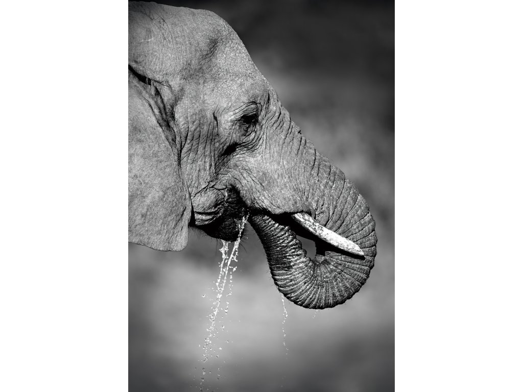 Nechte se fascinovat tímto působivým portrétem hlavy slona, který odhaluje krásu a složitost tohoto tvora. Detailní záběr na vrásčitou kůži, mohutné kly a moudré oko vytváří téměř hmatatelný dojem. Každá vráska jako by vyprávěla příběh života v divočině. Dílo je vytištěno na vysoce kvalitní plátno, které podtrhuje texturu a hloubku. Perfektní volba pro obdivovatele zvířat a umělecké fotografie.