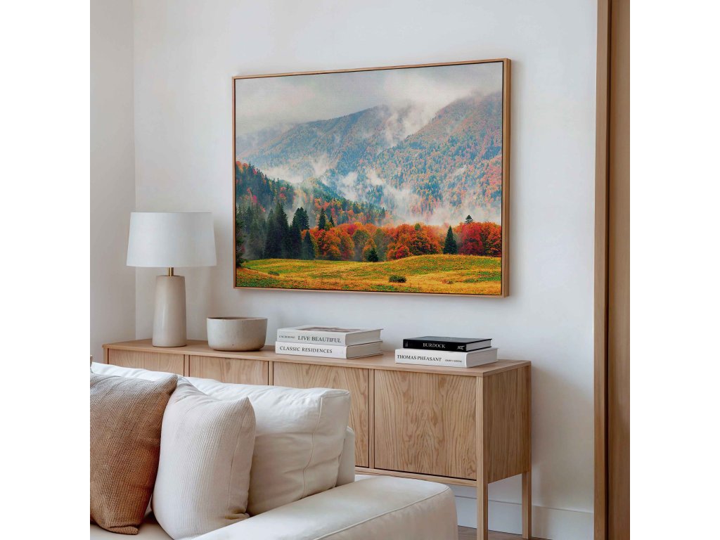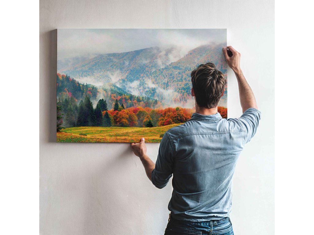 Vychutnejte si uklidňující atmosféru podzimních hor přímo u vás v obývacím pokoji. Tento obraz na plátně vykresluje horské štíty v hřejivém objetí zlatého a měděného listí. Scenerie doplněná o jemný ranní opar vytváří v interiéru pocit harmonie a relaxace. Použitý tisk na kvalitní plátno zaručuje barevnou stálost a hloubku každého detailu. Dekorace se skvěle hodí do ložnice, pracovny i haly, kde vytvoří útulné a inspirativní prostředí.