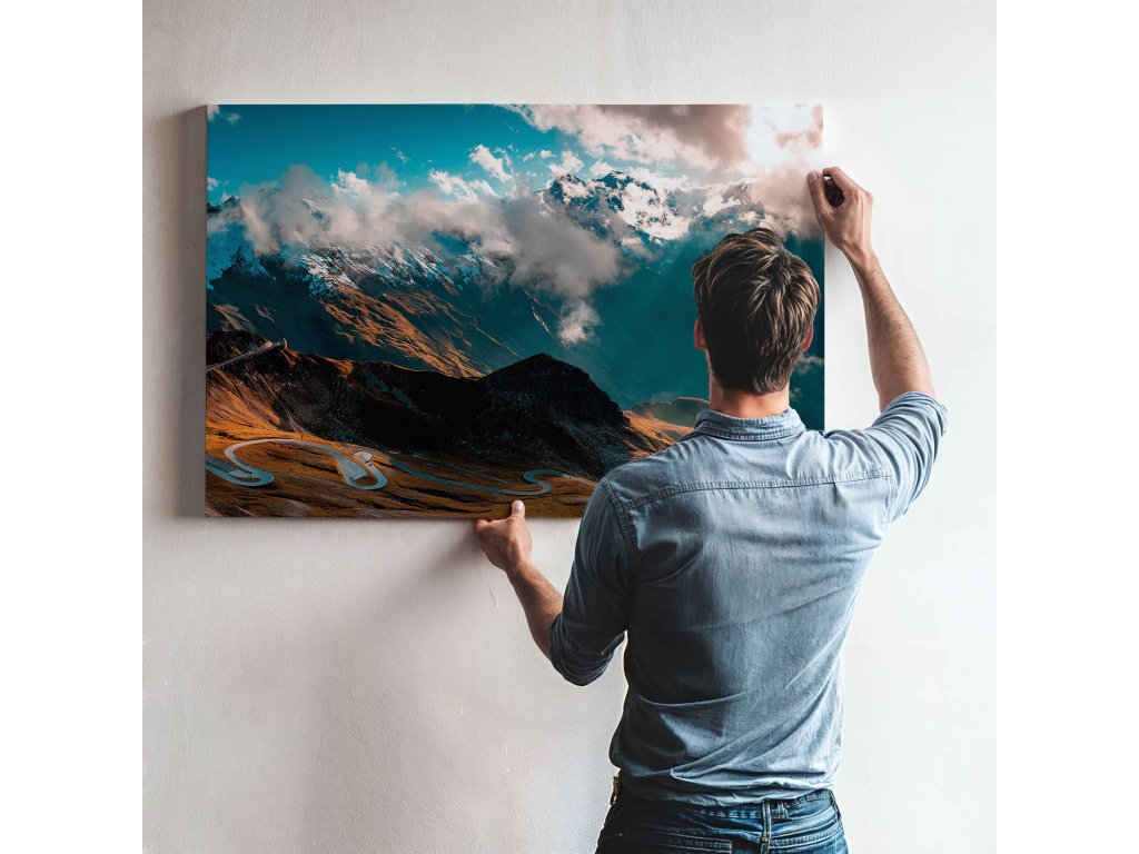 Obraz pro milovníky cest, rychlosti a výšek. Serpentiny vinoucí se horským údolím vytvářejí fascinující geometrický obraz v srdci divoké přírody. Tento motiv dodá vašemu interiéru moderní, dynamický nádech a pocit nadhledu. Kvalitní tisk na odolné plátno podtrhuje kontrast asfaltové cesty a zelených svahů. Ideální dekorace do pracovny nebo moderního bytu s industriálními prvky.