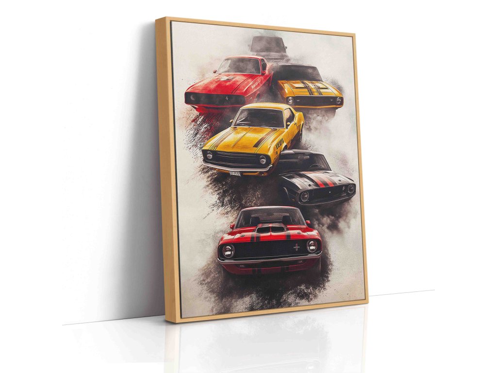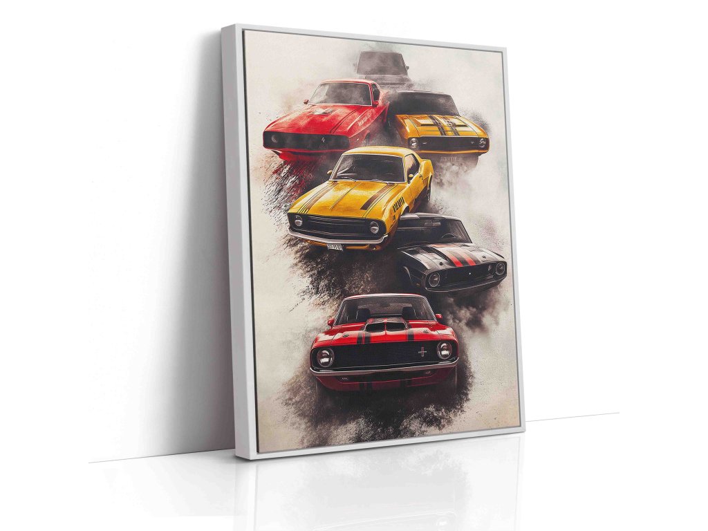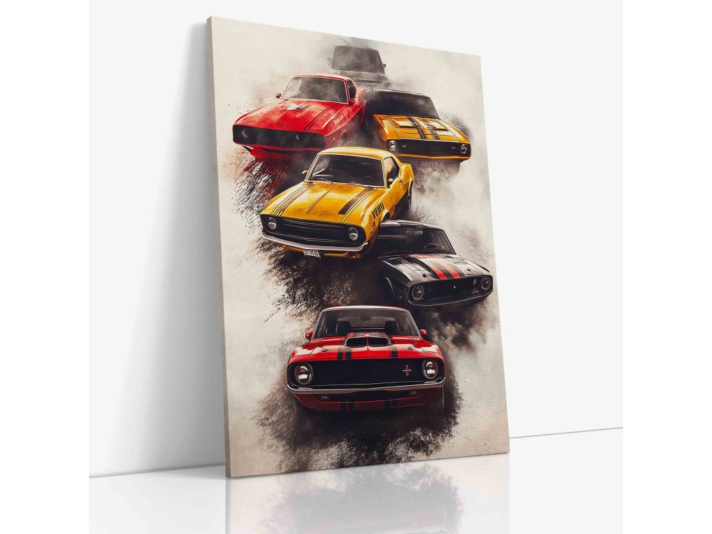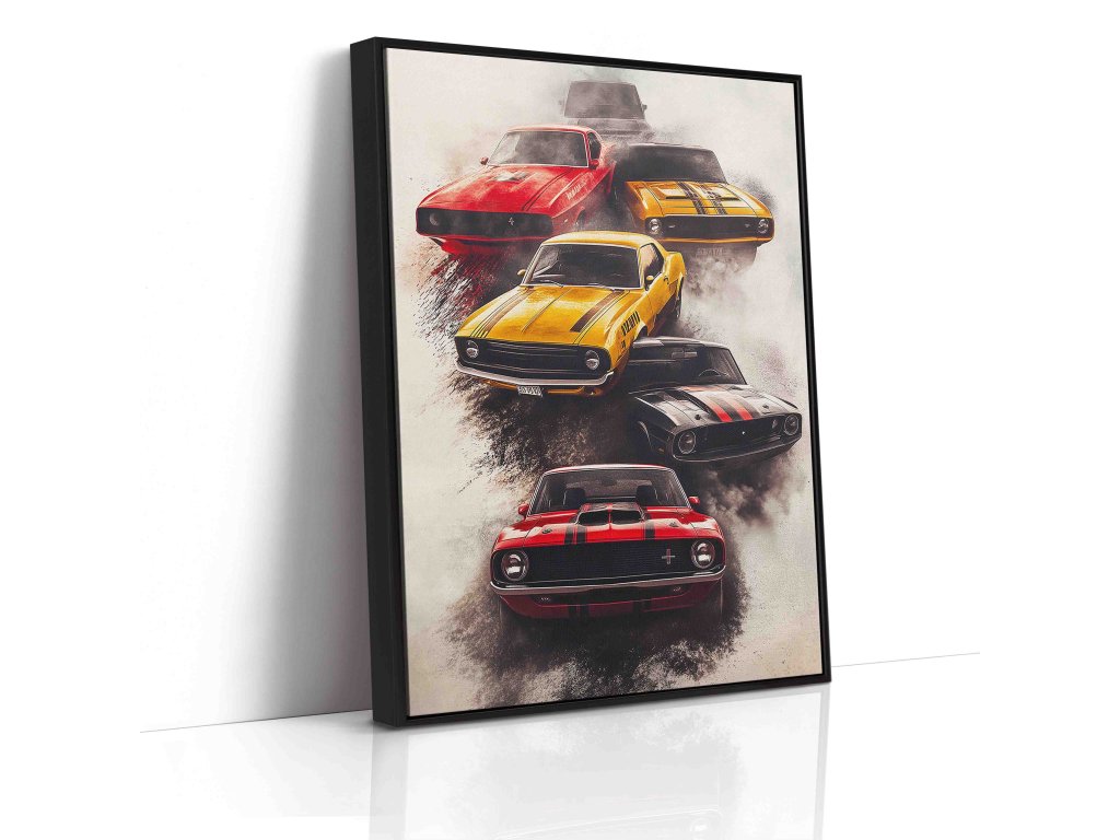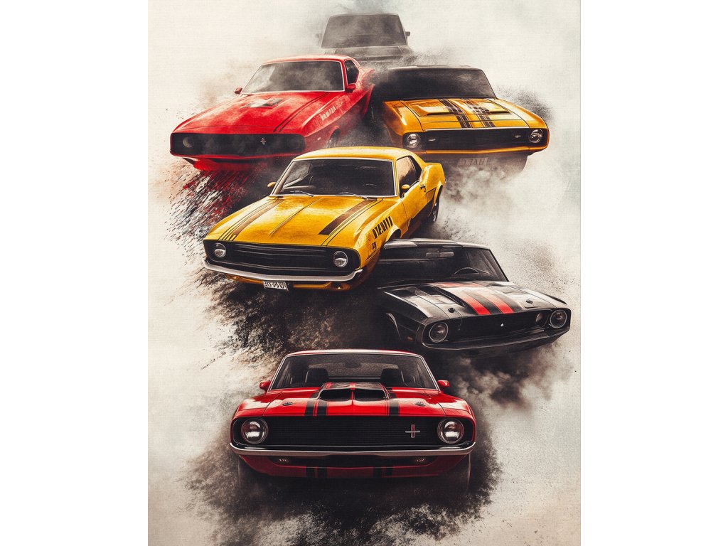 Kolekce těch nejznámějších amerických automobilů na jednom plátně. Od klasických muscle cars až po legendární křižníky silnic. Tento obraz je poctou americkému automobilovému snu. Díky špičkovému tisku na odolné plátno se můžete těšit na bohaté detaily a barvy, které rozzáří vaši stěnu.