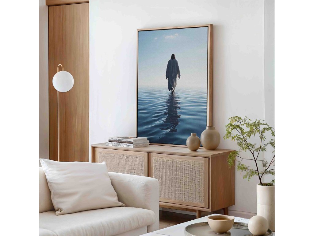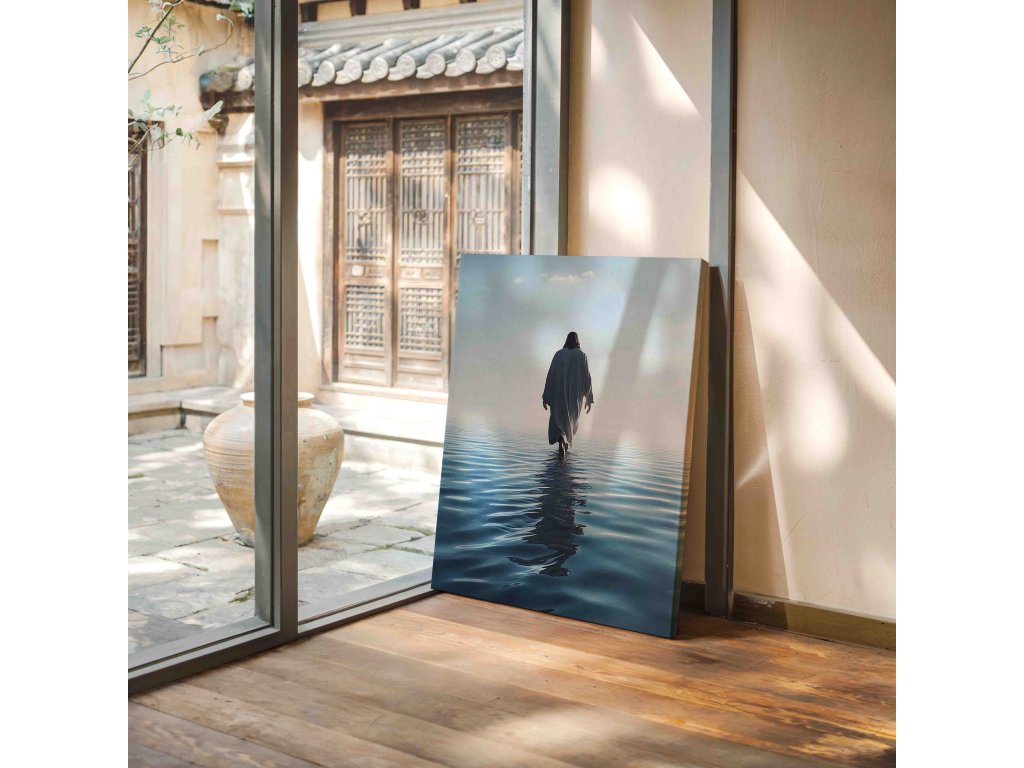 Nádherný obraz "Ježíš Kristus kráčí po vodě" zachycuje jeden z nejznámějších biblických zázraků v působivém uměleckém pojetí. Toto dílo na kvalitním plátně zobrazuje Spasitele, jak s klidnou důstojností překonává přírodní zákony. Mistrovské zpracování detailů, zejména interakce světla s vodou, podtrhuje nadpřirozený charakter scény. Obraz vyzařuje pokoj a sílu víry. Perfektní volba pro domácí oltář, kostel nebo jako inspirativní dar pro věřící.