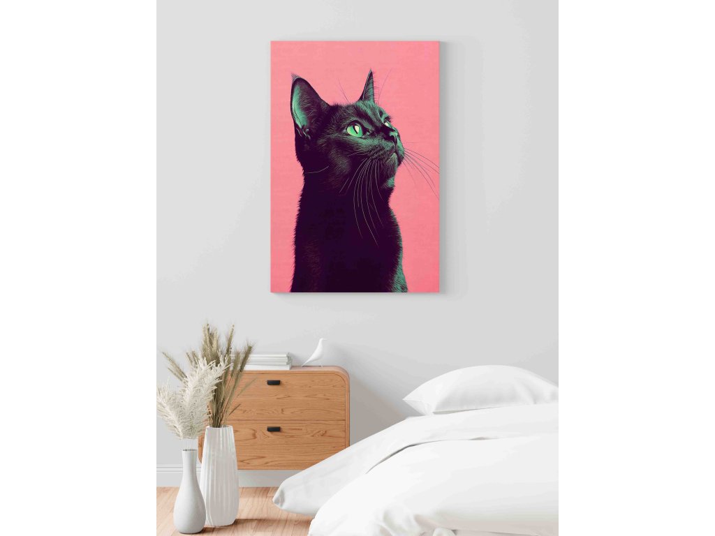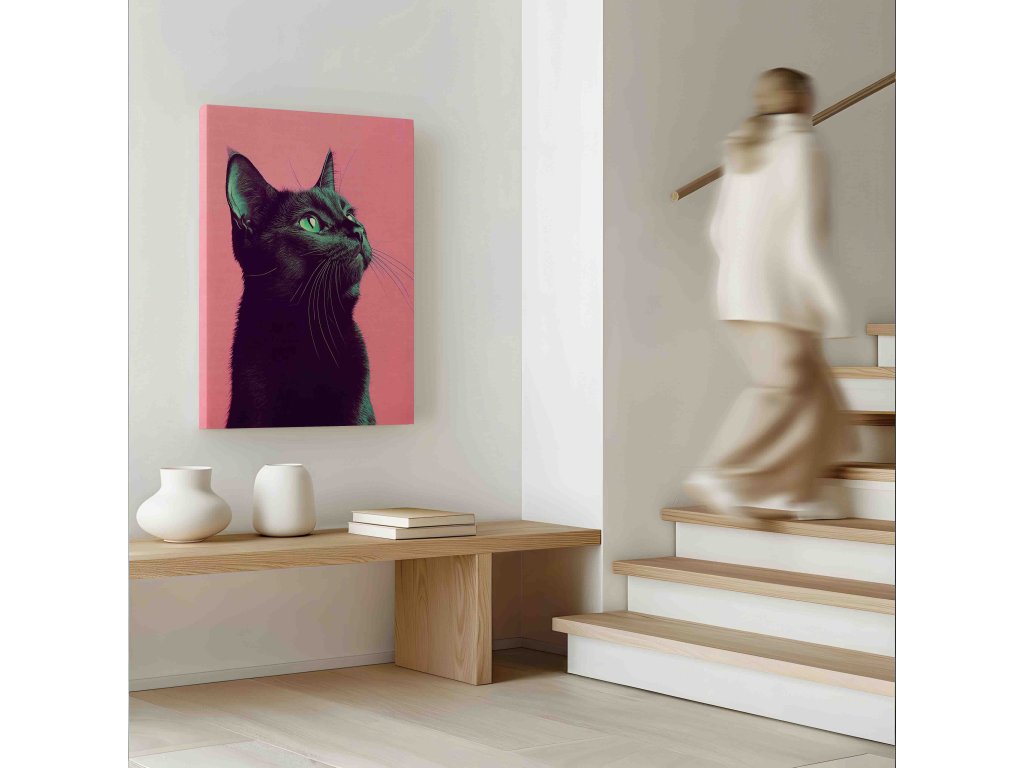 Minimalismus s maximálním barevným dopadem. Obraz na plátně zobrazující kočku na sytě růžovém pozadí je elegantním a moderním kouskem pro váš domov. Čistá kompozice nechává vyniknout přirozenou krásu kočičí siluety, zatímco zářivá barva dodává prostoru moderní šmrnc. Skvěle se hodí jako barevný akcent do bílých nebo šedých interiérů. Kvalitní plátno zaručuje barevnou stálost a luxusní vzhled.