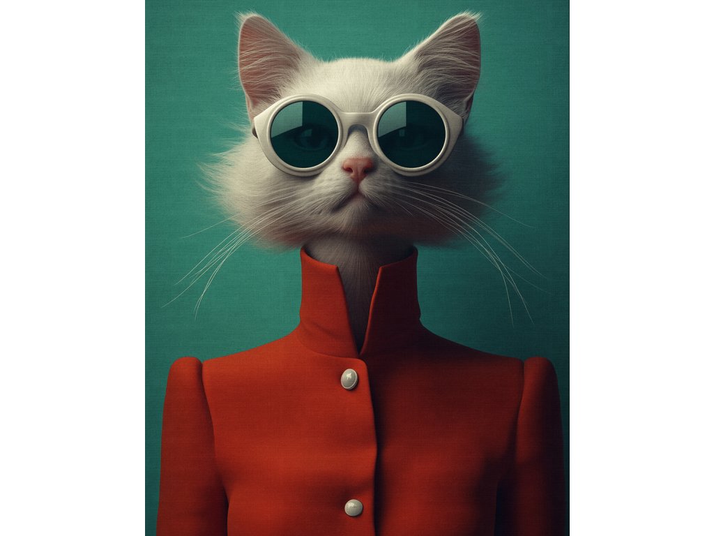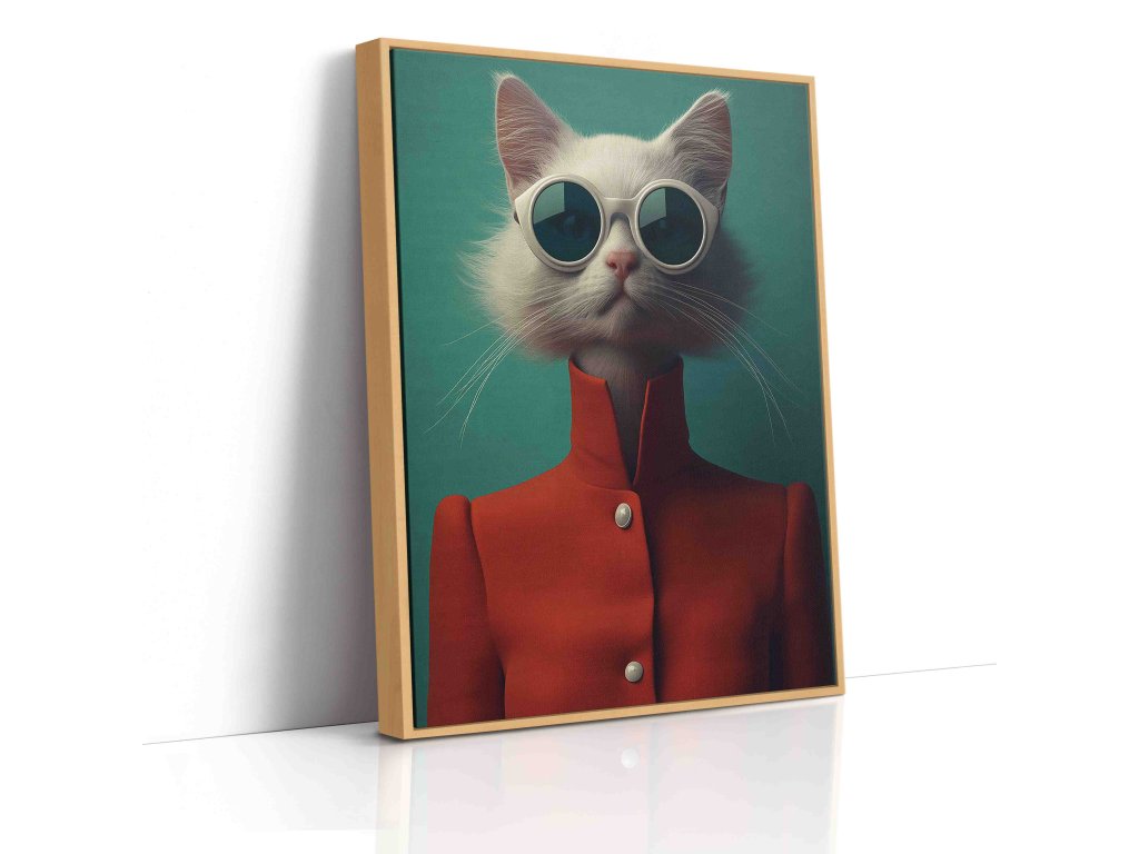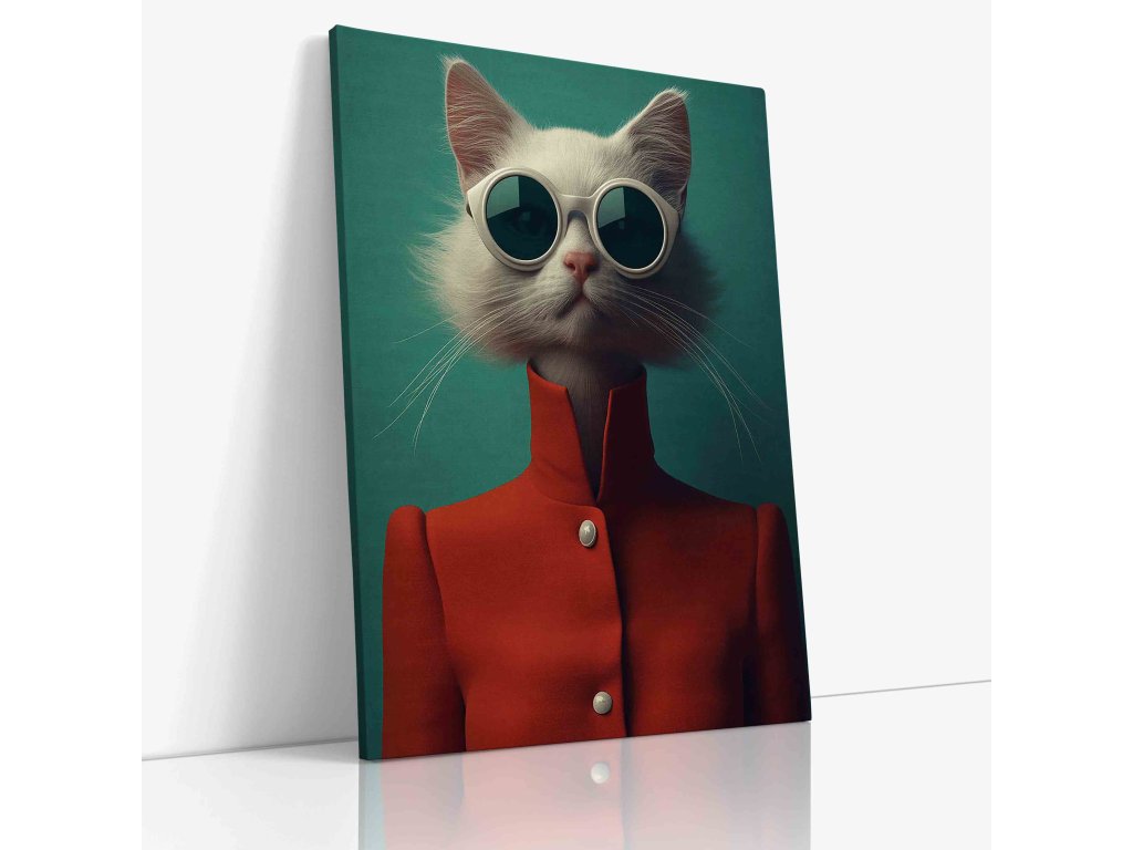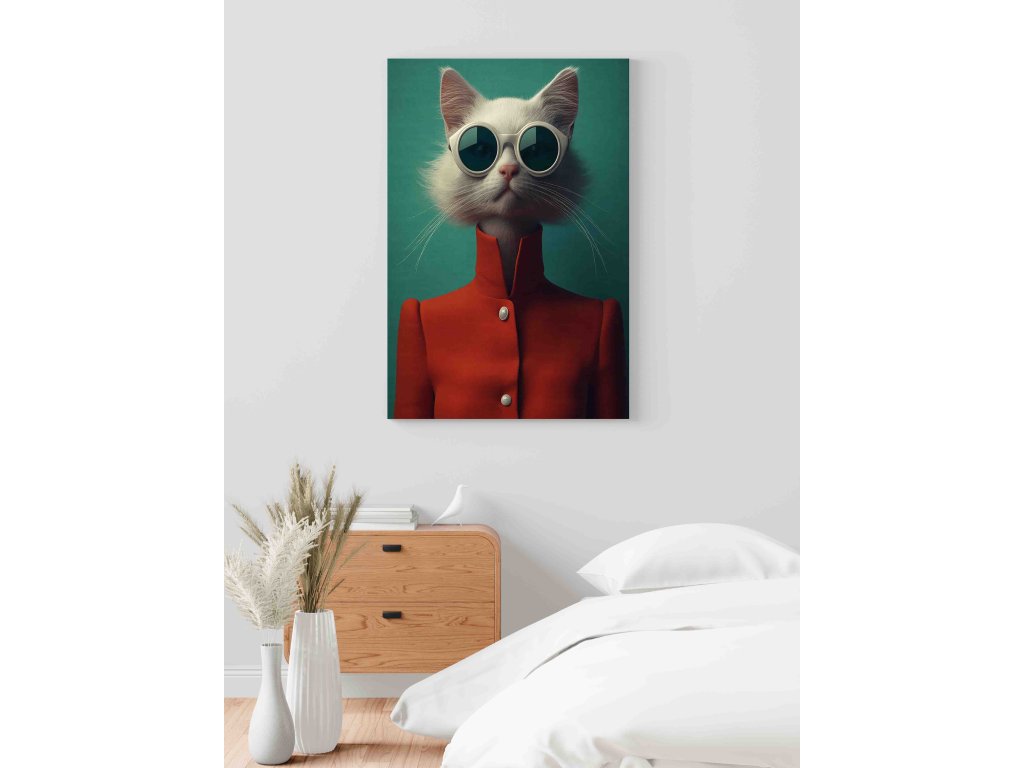 Hledáte dekoraci s vtipem a stylem? Tento antropomorfní obraz na plátně zobrazuje kočku oblečenou v sytě červeném kabátě. Spojení zvířecí roztomilosti a lidské módy vytváří originální umělecké dílo, které zaručeně vyvolá úsměv. Červená barva dodá místnosti energii, zatímco nevšední motiv ukáže váš smysl pro humor. Perfektní jako dárek nebo originální prvek do moderní haly.