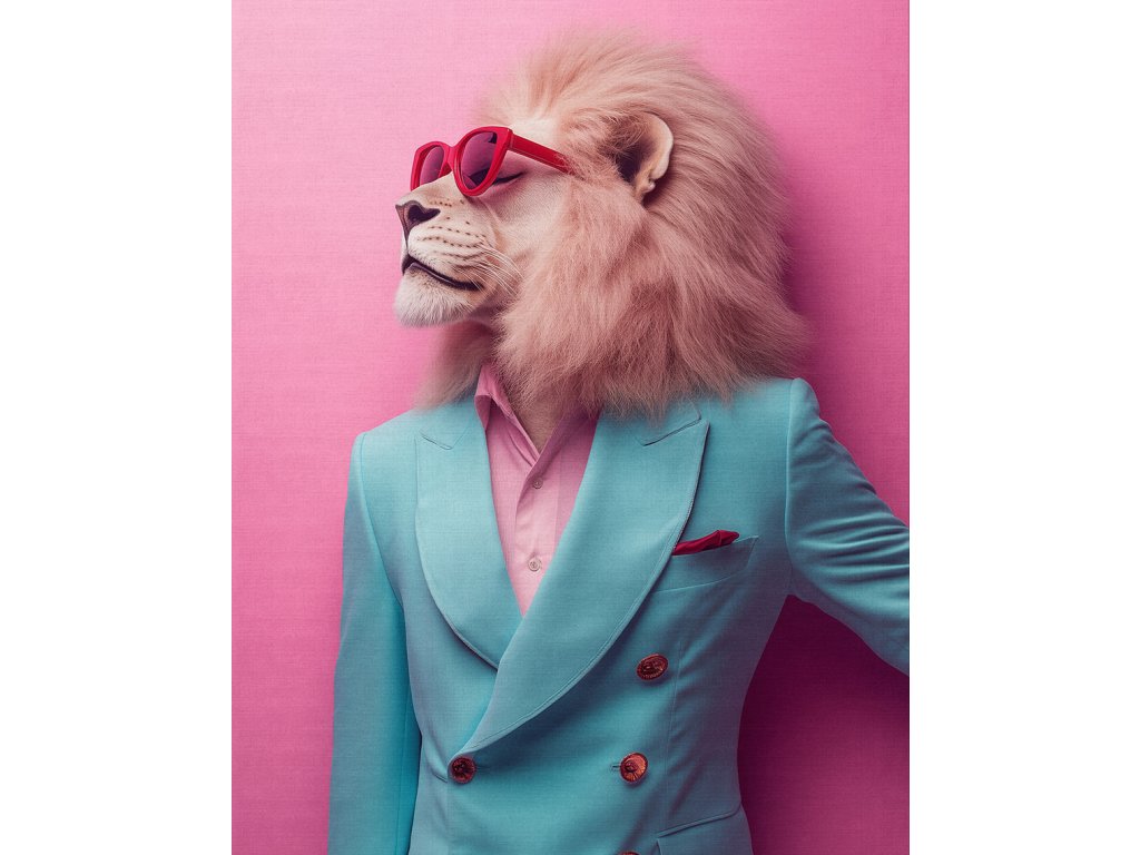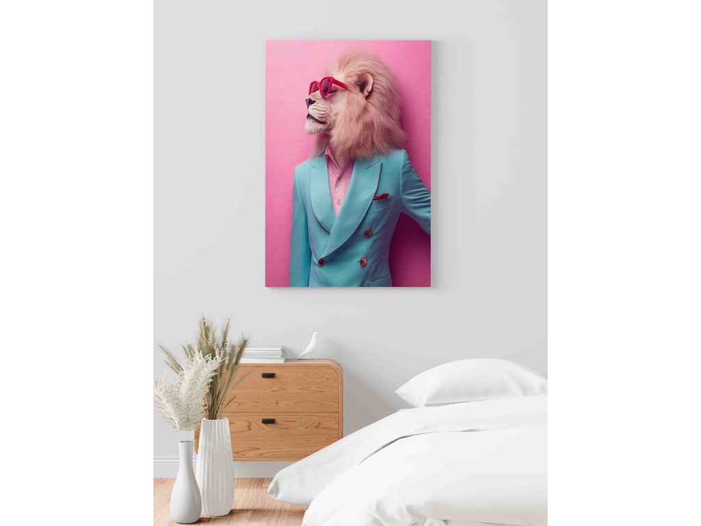 Lev jako moderní intelektuál? Proč ne! Tento obraz na plátně spojuje majestátnost lva s moderními slunečními brýlemi. Výsledkem je originální a sebevědomé dílo, které vyzařuje autoritu i nadhled. Hustá hříva v kontrastu s hladkým povrchem brýlí vytváří zajímavou texturu, která na plátně vypadá skvěle. Ideální dekorace do obývacích pokojů nebo kanceláří lídrů, kteří mají smysl pro originální styl.