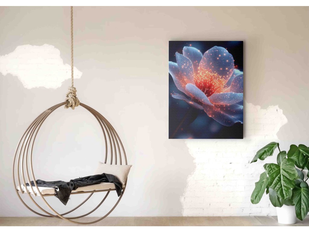 Magický obraz květu, který dramaticky vystupuje z temnoty, jako by sám zářil. Tento fascinující snímek na plátně zachycuje květinu v jedinečném světelném aranžmá, kde jemné kontury květu kontrastují s hlubokým temným pozadím. Tajemná hra světla a stínu vytváří téměř mystickou atmosféru. Dokonalá volba pro vytvoření dramatického ohniska v jakémkoliv interiéru. Umělecká interpretace propůjčuje přírodnímu motivu neobyčejnou dimenzi.