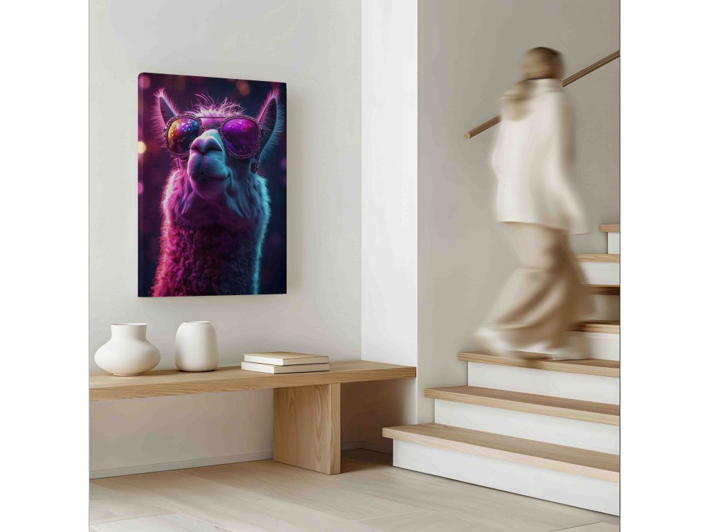 Rozzařte svou stěnu energií nočního města. Obraz na plátně s motivem lamy v zářivém neonovém stylu je ideální pro fanoušky kyberpunku a moderního digitálního umění. Neonové kontury a vibrantní barvy vytvoří v místnosti elektrizující atmosféru. Tento obraz vynikne zejména v moderních bytech s náladovým osvětlením nebo v herních koutcích. Kvalitní tisk na černé pozadí dává barvám neuvěřitelnou hloubku.