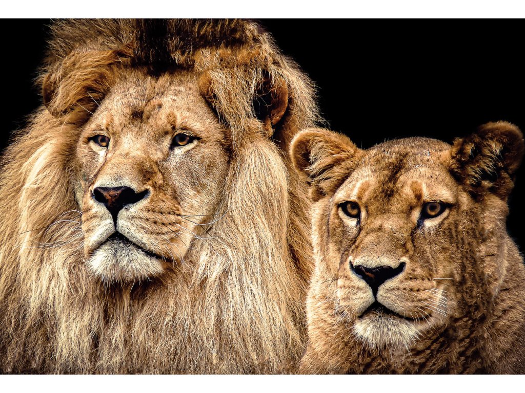 Něha v divočině. Detailní záběr na interakci páru, možná při otírání hlav nebo odpočinku. Ukazuje, že i šelmy mají své jemné chvilky plné náklonnosti. Tento obraz vnáší do interiéru prvek lásky a intimity v divokém podání. Krásný dárek pro partnera.