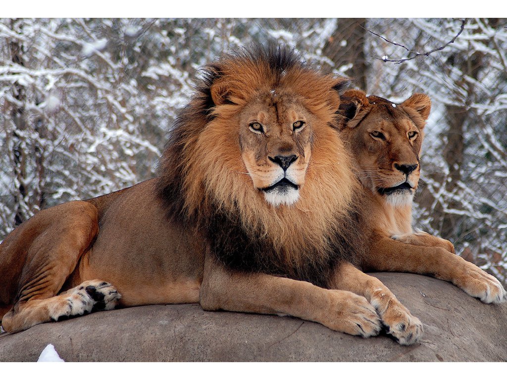 Obraz Lev a lvice v zimě - Obraz na plátně