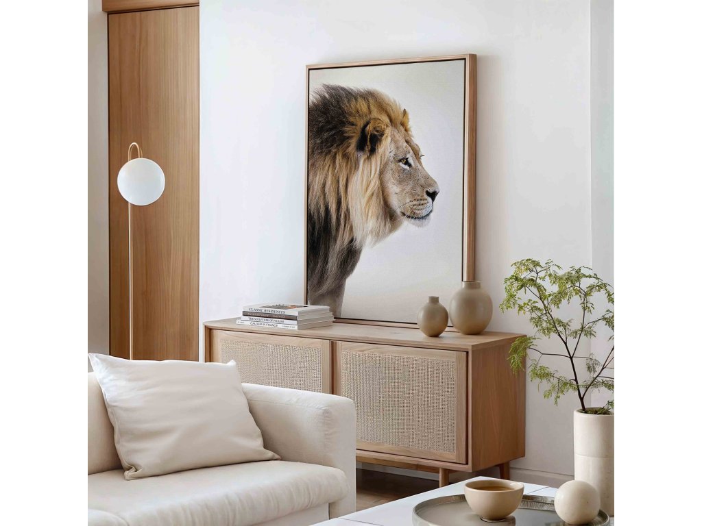 Čistý design. Obraz lva izolovaného na bílém pozadí je moderní a graficky čistý. Nic neruší pozornost od samotného zvířete a jeho detailů. Ideální do moderních, vzdušných interiérů, kde vynikne krása zvířete bez zbytečných rušivých elementů okolí. Minimalismus v té nejlepší formě.