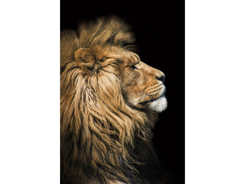 Důstojnost v každém rysu. Profil lva na plátně ukazuje ušlechtilé linie jeho hlavy a mohutnost hřívy. Je to elegantní a klasické zobrazení krále zvířat, které se hodí do pracoven, knihoven nebo obývacích pokojů. Obraz působí klidně, ale zároveň vyzařuje respekt a sílu přírody.