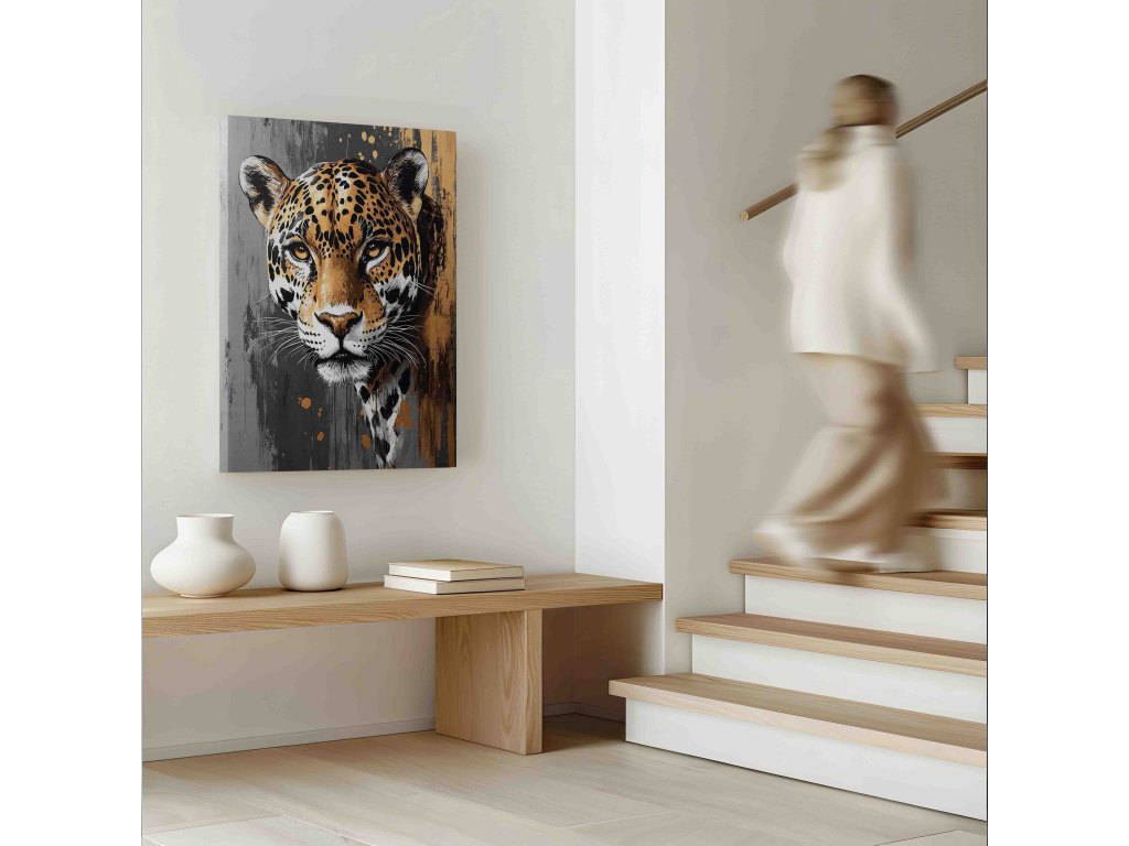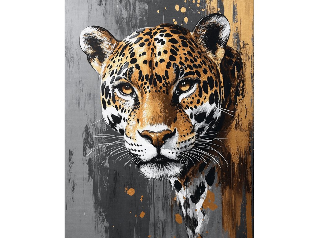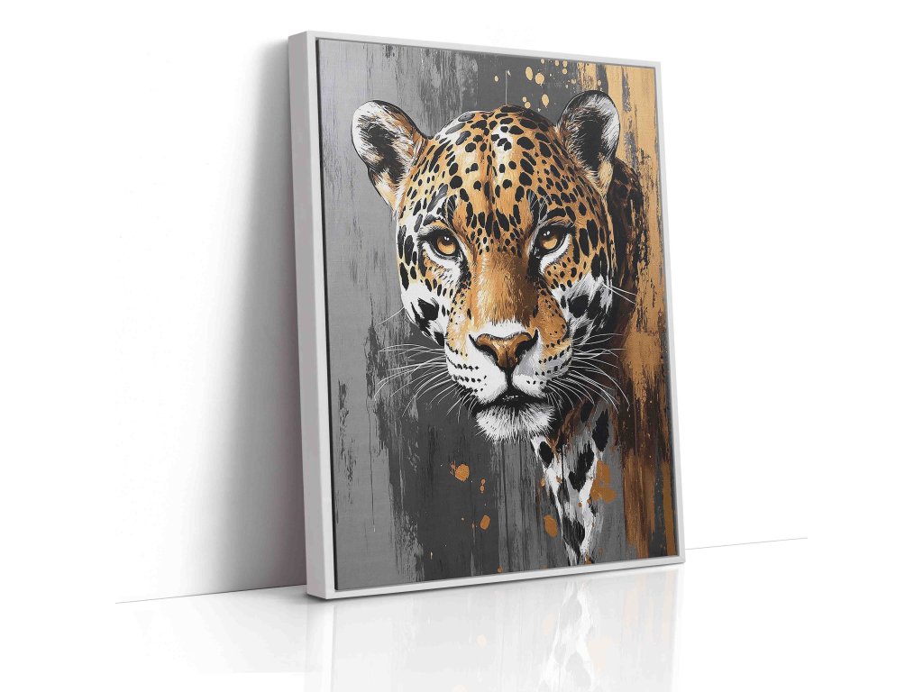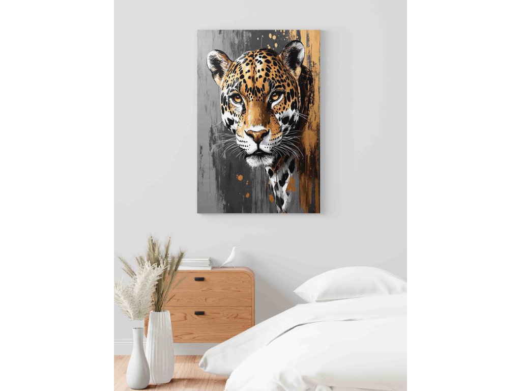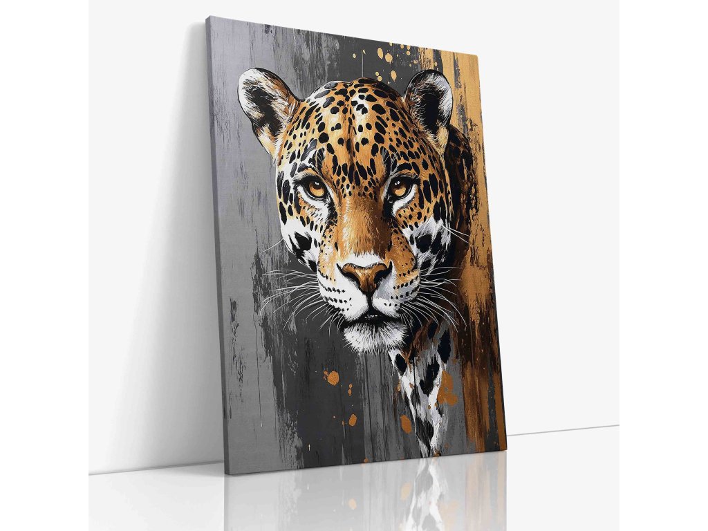 Spojení luxusu a dravosti. Tento exkluzivní obraz na plátně zachycuje jaguára v rafinované kombinaci šedých tónů a zlatých detailů. Zlaté akcenty na srsti dodávají šelmě aristokratický vzhled, který se skvěle hodí do moderních interiérů laděných do šedé, černé nebo zlaté barvy. Je to ideální kousek pro ty, kteří hledají něco víc než jen obyčejný zvířecí obraz – hledají šperk pro svou stěnu. Kvalitní plátno a prémiový tisk zaručují luxusní výsledek.