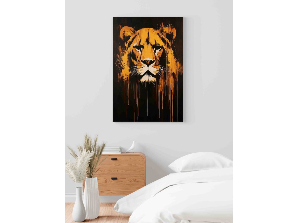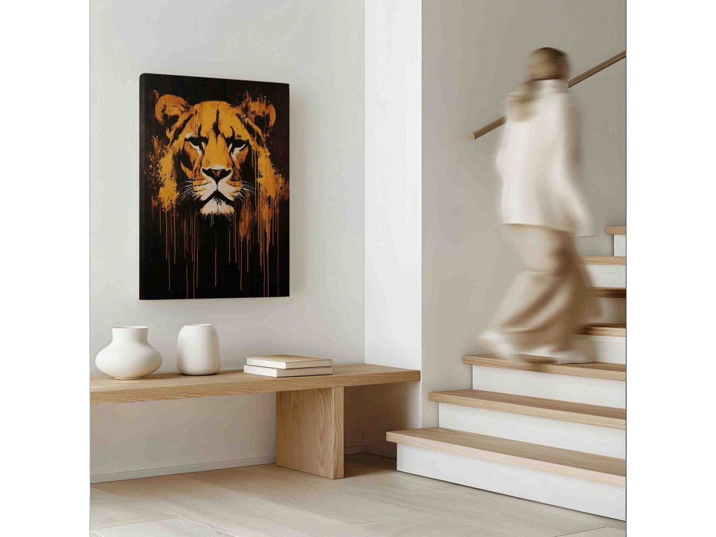 Královna ulice u vás doma. Tento obraz na plátně zobrazuje lvici ve stylu Urban Art, kde se klasická zvířecí krása mísí s prvky graffiti a pop-artu. Výrazné kontury a moderní barevné akcenty dodávají lvice dravost a styl, který v tradičních portrétech nenajdete. Ideální pro moderní ženy a muže, kteří hledají dekoraci s charakterem. Plátno je vytištěno v prémiové kvalitě, aby vynikla každá street artová čára.