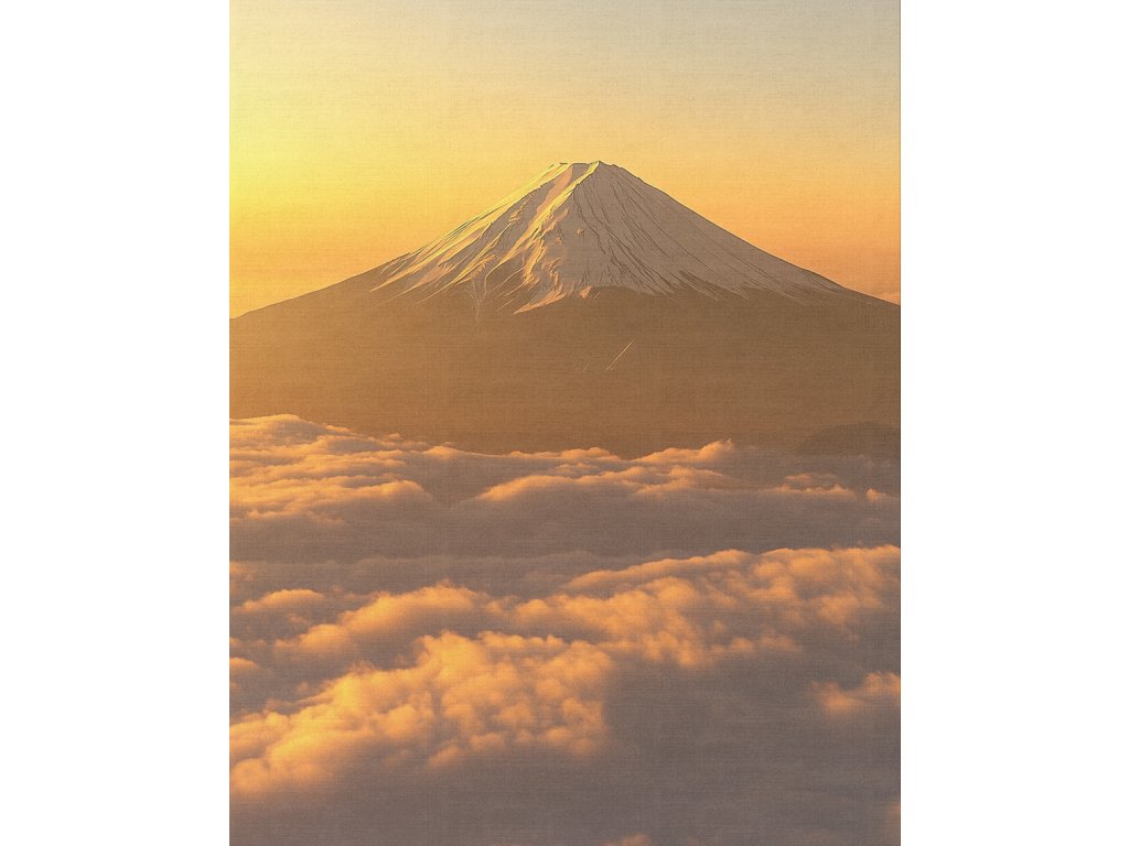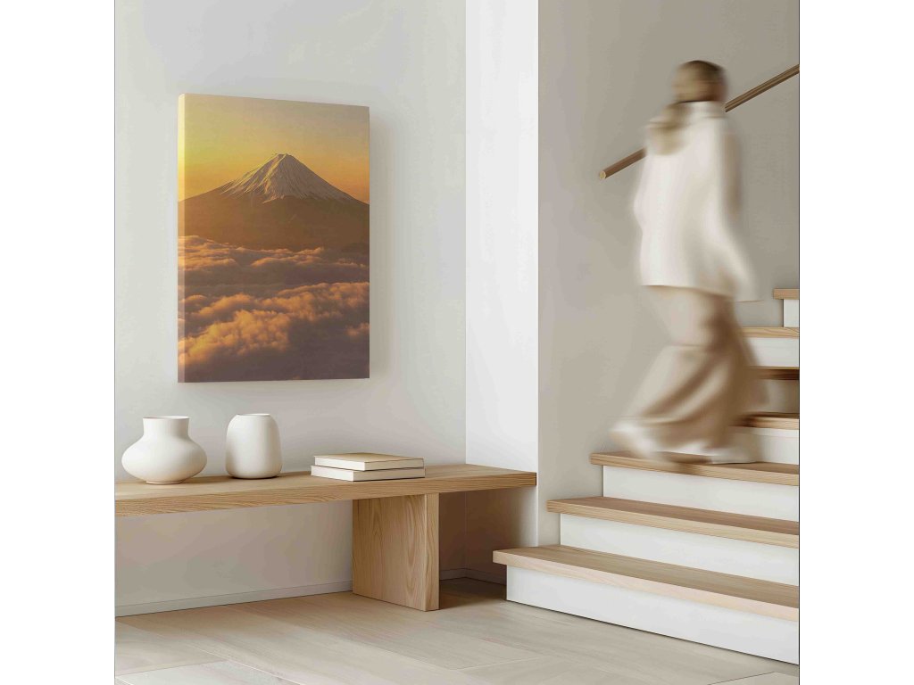 Čistý pohled na nejuctívanější horu Japonska. Obraz sopky Fudži v její přírodní kráse se zaměřuje na dokonalý kuželovitý tvar hory a klid okolní krajiny. Tento obraz přináší do interiéru kousek východní filozofie a úcty k přírodě. Syté barvy a kvalitní tisk na plátno zajistí, že tato přírodní dominanta bude zářit v každé místnosti.