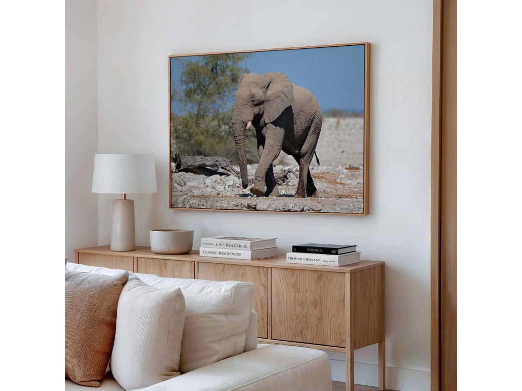 Energický a radostný obraz mladého slona v hravém běhu africkou savanou. Mládě vyzařuje nefalšovanou radost ze života a bezstarostnost. Dynamický pohyb je perfektně zachycen, s lehce rozmazanými končetinami a pozvednutým chobotem. Oblak prachu zvířený jeho kroky přidává scéně na živosti. Tisk na prémiové plátno zaručuje ostrost detailů a věrné barvy. Ideální dekorace do dětských pokojů.
