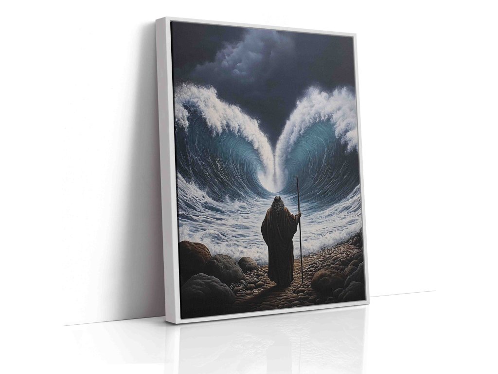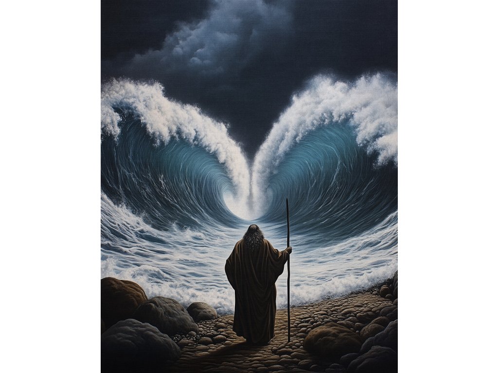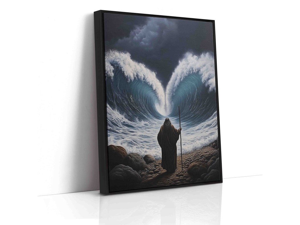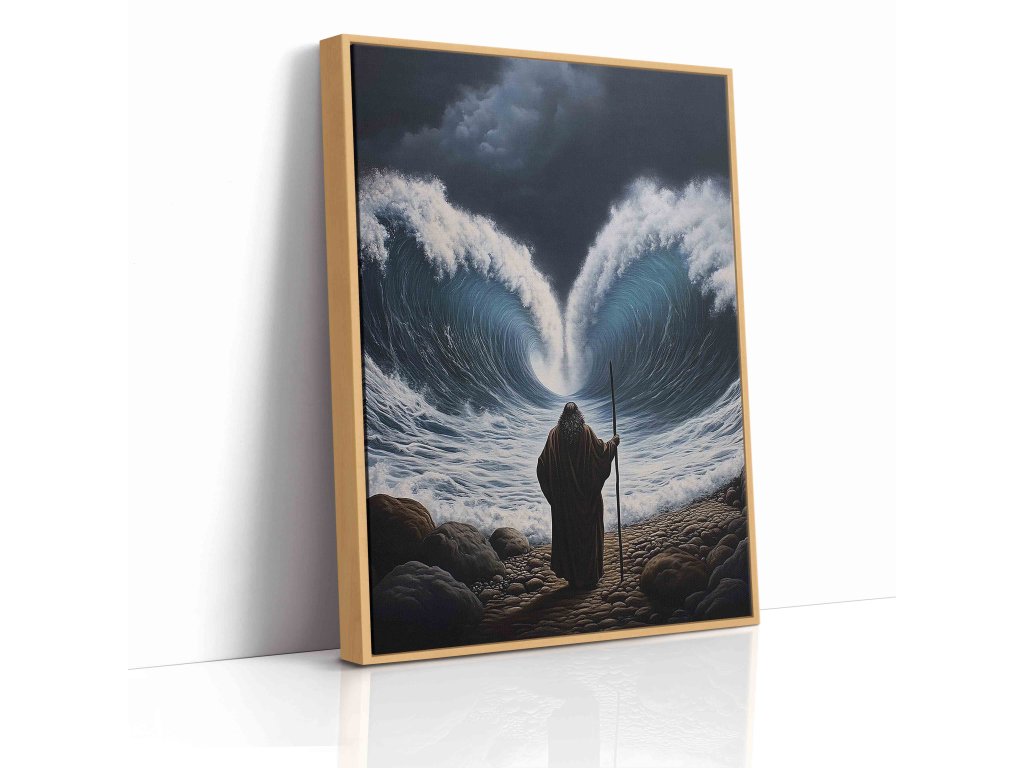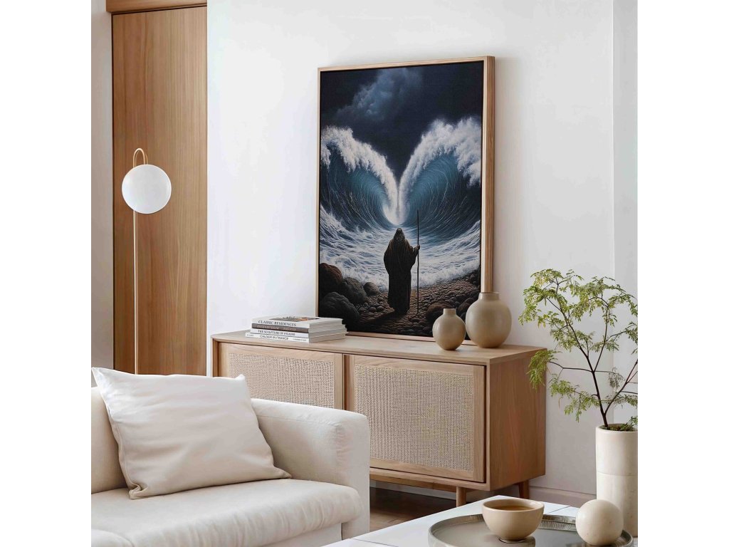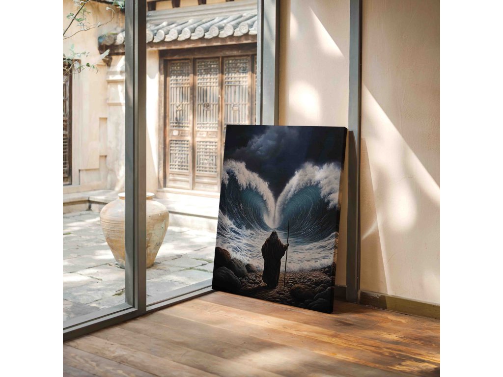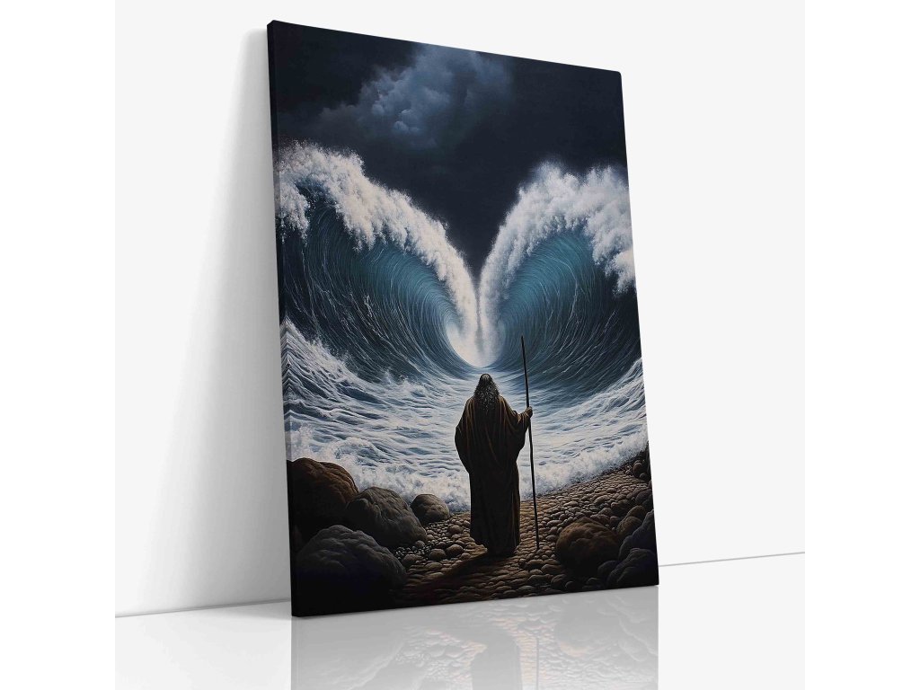 Dramatický obraz "Mojžíš rozevírá moře" zachycuje jeden z nejpůsobivějších momentů Starého zákona. Toto dílo na plátně zobrazuje okamžik, kdy Mojžíš s božskou mocí rozestupuje vody Rudého moře. Monumentální kompozice vyniká dramatickým kontrastem mezi mocnými vodními masami a postavou proroka. Dynamické zpracování živlů a expresivní světelné efekty umocňují napětí. Obraz připomíná sílu víry a Boží zásah.