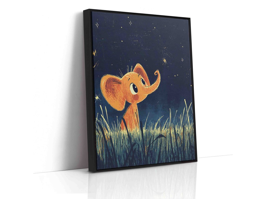 Něžný noční sloník přináší do dětského pokoje kouzlo hvězdné oblohy a klid. Tento uklidňující obraz na kvalitním plátně zachycuje oblíbeného slona v nočním prostředí, které napomáhá vytvoření ideálních podmínek pro usínání. Tmavé tóny a hvězdný motiv pomáhají překonat strach z tmy. Prémiové materiály zajišťují dlouhou životnost. Ideální dárek pro děti.