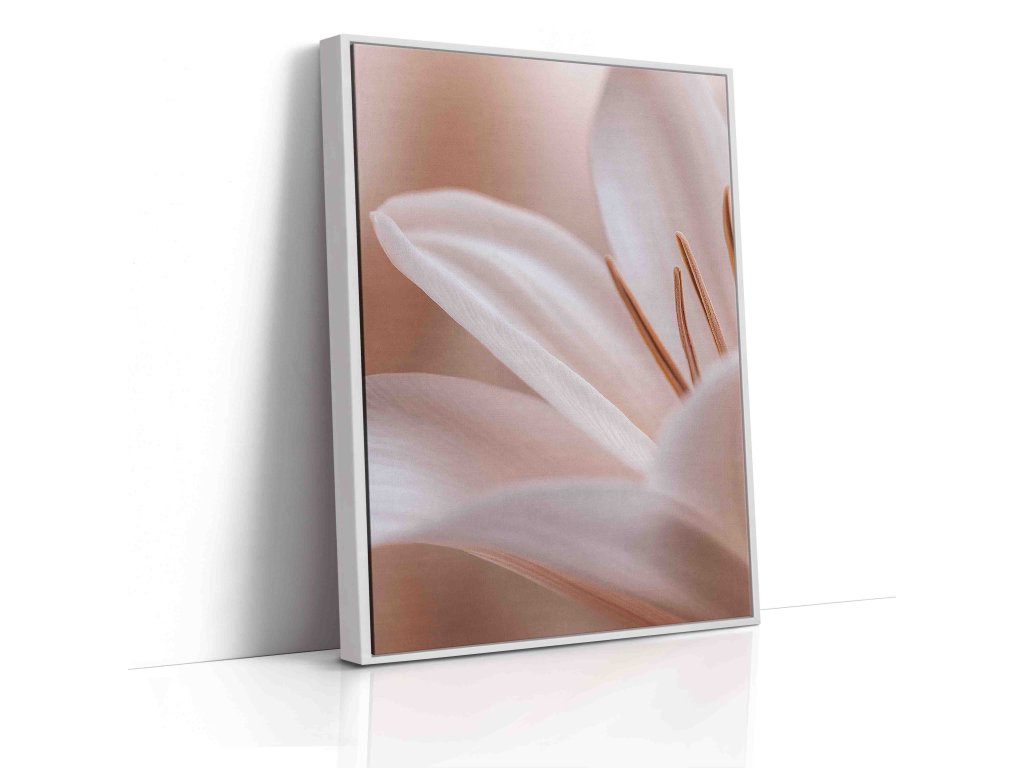 Fascinující makro snímek zaměřený na pestíky bílého květu, odhalující skrytý svět reprodukčních orgánů rostliny. Tento jedinečný obraz na plátně zachycuje botanický detail, který běžnému pohledu zůstává utajen. Precizní detail umožňuje pozorovat jemné struktury a fascinující architekturu těchto vitálních částí rostliny. Čistá bílá barva dodává kompozici nadčasovou eleganci. Dokonalá volba pro milovníky botaniky.