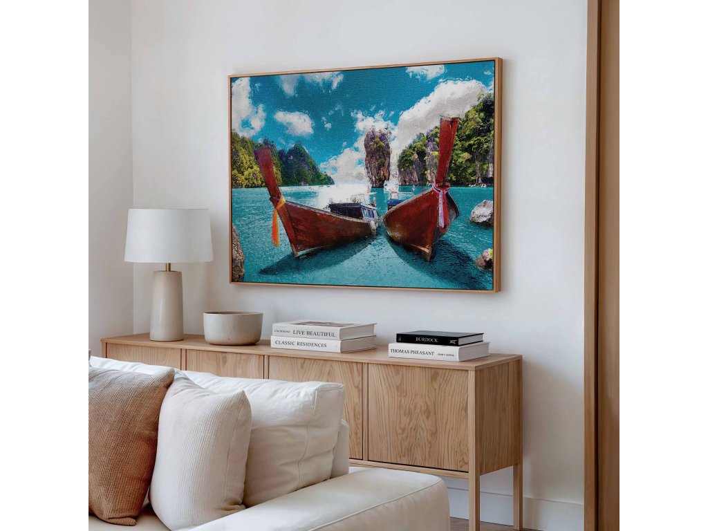 Váš soukromý kousek ráje. Obraz thajské pláže s bílým pískem, palmami a azurovým mořem je lékem na šedivé dny. Tento motiv okamžitě navodí pocit tepla, pohody a relaxace. Kvalitní tisk přenese jasné barvy tropů přímo na vaši stěnu a vytvoří doma atmosféru věčné dovolené.