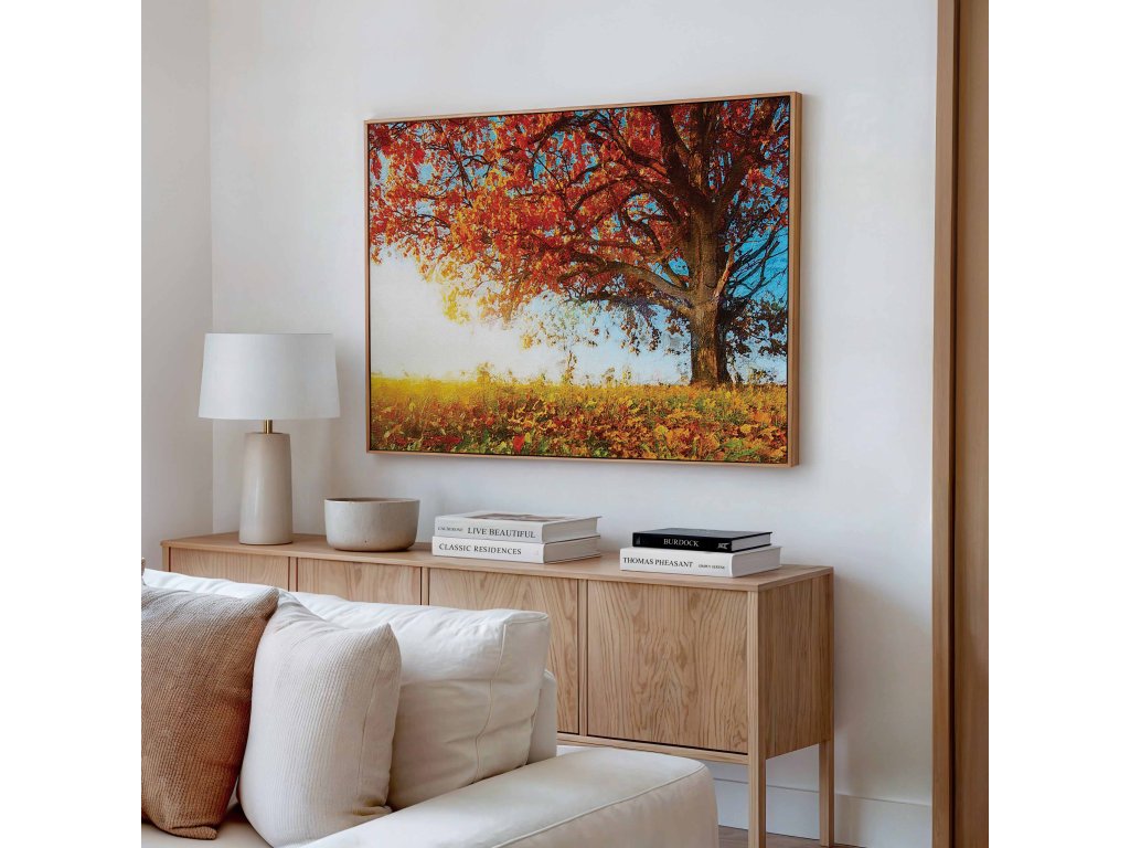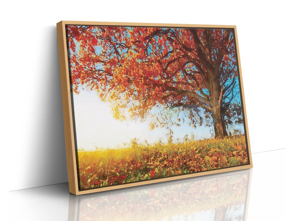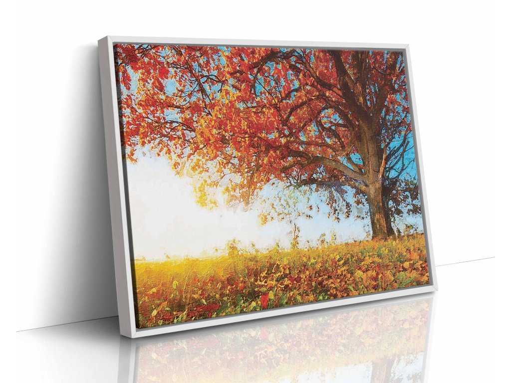 Pozvěte do svého obývacího pokoje hřejivou paletu podzimu s obrazem stromu v plném barevném proměnění. Odstíny zlaté, sytě oranžové a červené vytváří útulnou atmosféru a připomínají krásu přírodních cyklů. Tento obraz na plátně působí jako okno do klidného parku. Díky kvalitnímu tisku barvy zůstávají syté a dodají prostoru potřebné teplo.