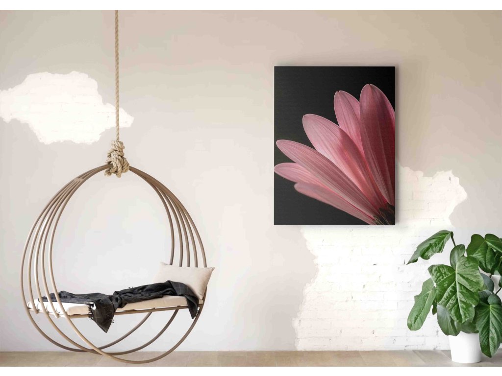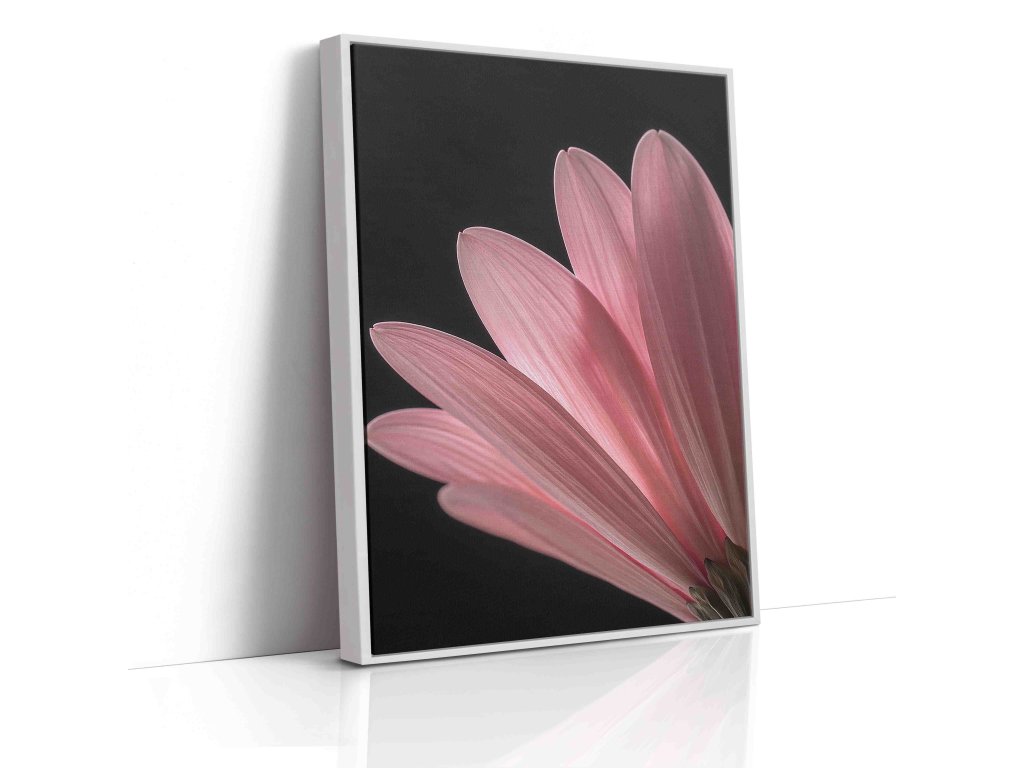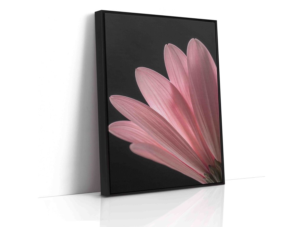 Dramatický a podmanivý portrét růžového květu, který výrazně kontrastuje s hlubokým černým pozadím. Tento působivý obraz na plátně zachycuje jemnou krásu a strukturu růžových okvětních lístků, které jako by zářily z temnoty. Precizní detail odhaluje fascinující textury a přechody růžových odstínů. Kontrastní hra růžové a černé přináší výrazný, a přesto elegantní estetický prvek. Ideální volba pro moderní a stylové prostory.