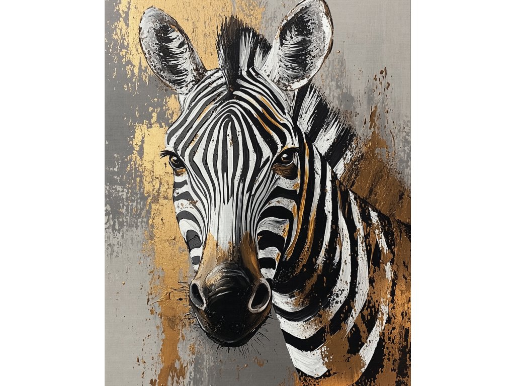 Obraz Šedo-zlatá zebra (umělecká malba) – Obraz na plátně